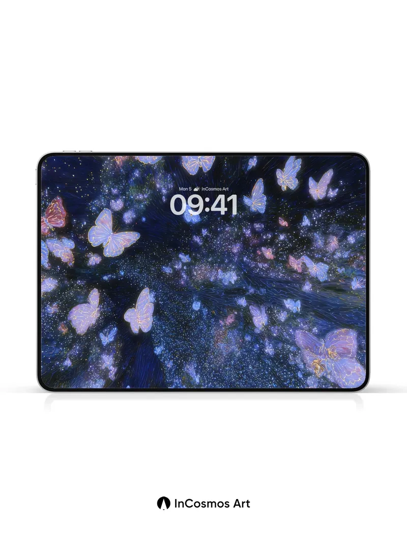 Luminous Butterfly Swarm Wallpaper in Cosmic Depths