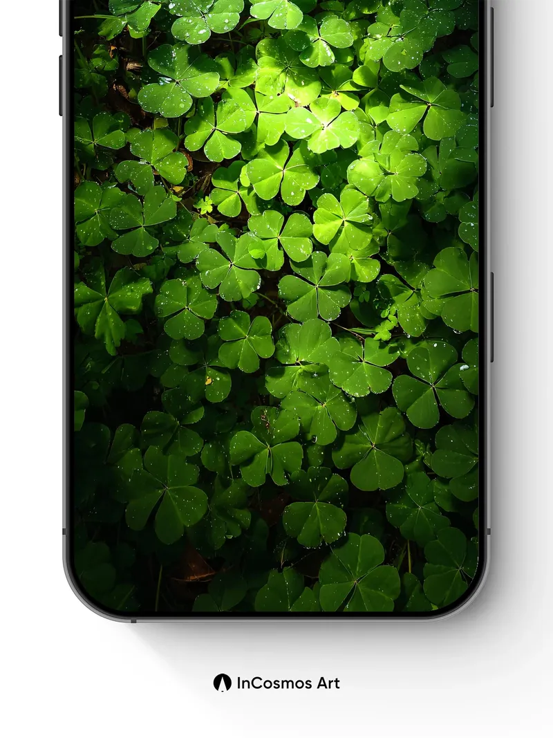 Luminous Clover Wallpaper with Dew-Kissed Leaves