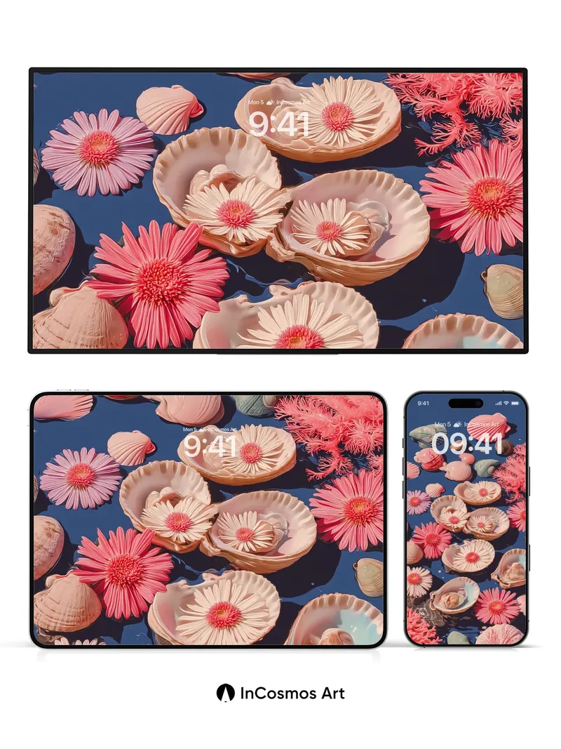 Luminous Coral Reef Wallpaper with Petal-Shells