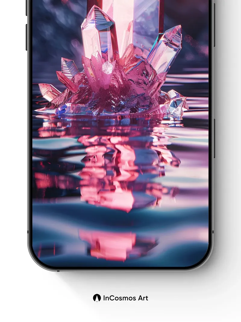 Luminous Crystal Mirage Wallpaper with Water Reflections