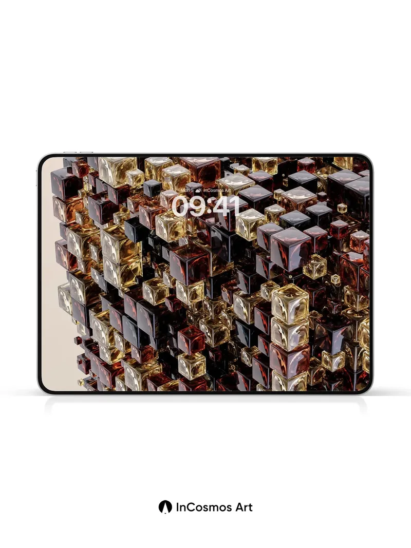 Luminous Cube Array Wallpaper with Shimmering Depth