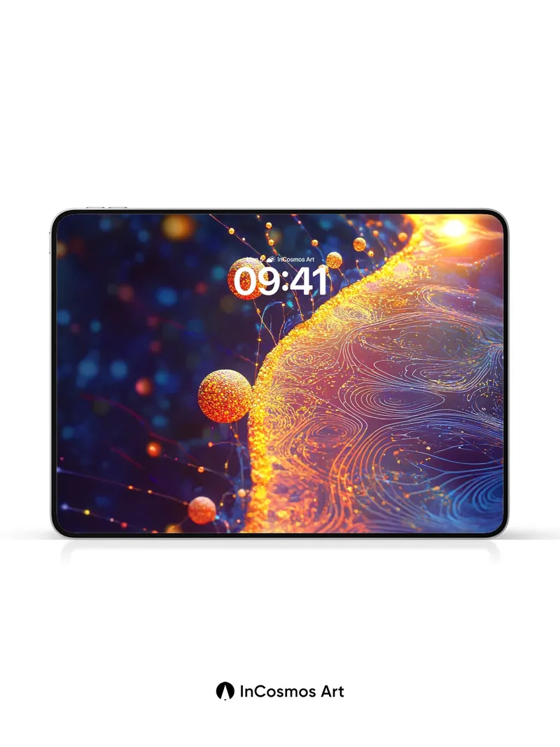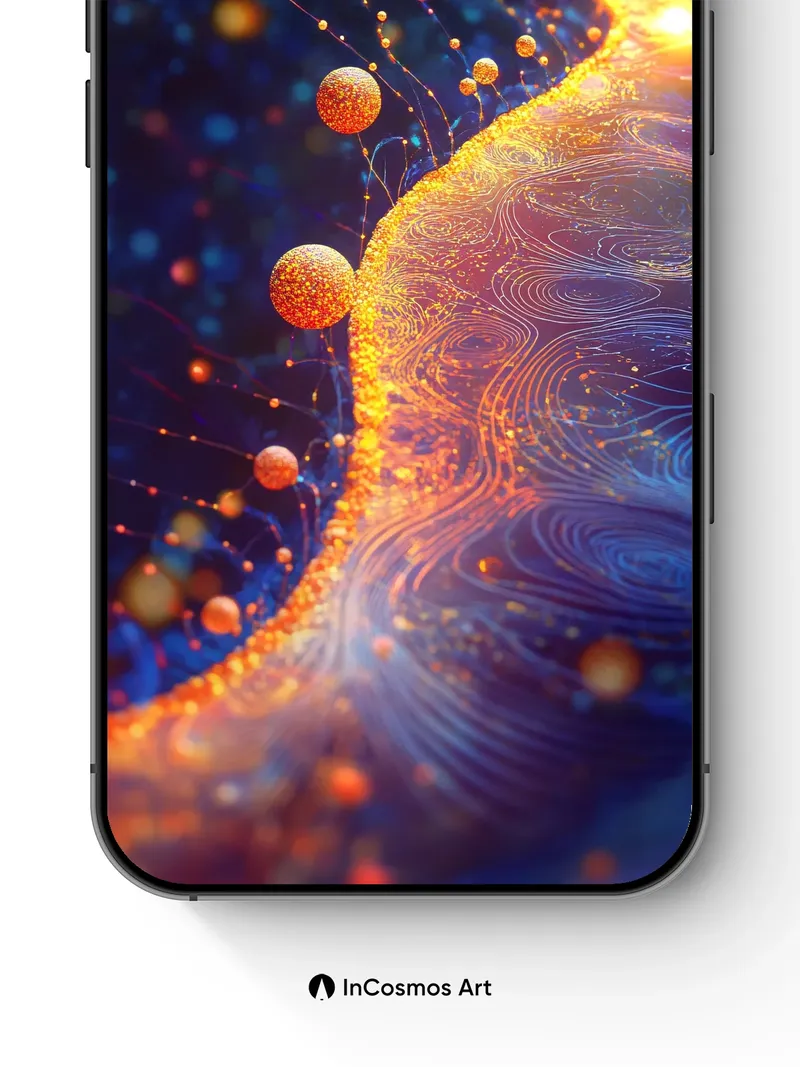 Debug page_description: Did you know that light can behave like a liquid when refracted through nanostructured surfaces? Here, golden spheres drift along a molten river of swirling energy, their surfaces crackling with micro-particles that pulse in sync with the ambient glow. You feel the warmth radiating from the edge, where electric veins trace paths through deep indigo voids—like stars born from breath. Share this with your best friend. Send this to your love and swap a matching set. What if every glance into the dark revealed a new constellation?