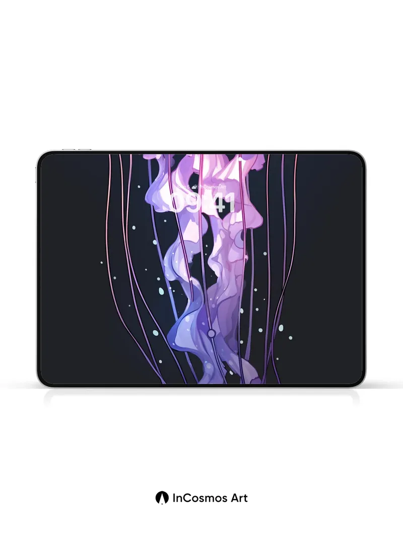 Debug product.metafields.custom.desc: Did you know jellyfish have existed for over 500 million years, predating dinosaurs? This glowing form pulses like a bioluminescent dream, its translucent bell radiating soft light through swirling tendrils that float like silk in midnight water. Each delicate filament shivers with inner life, casting shimmering reflections that dance across the dark void—like stars fallen into the ocean’s hush.
