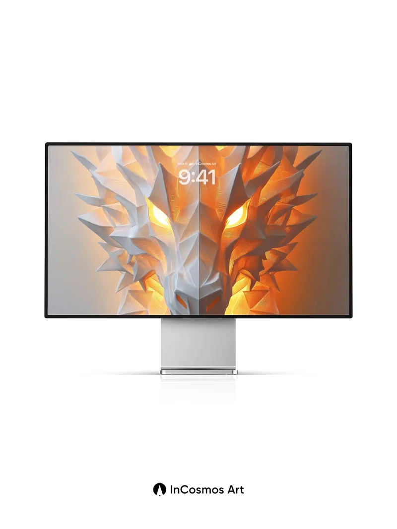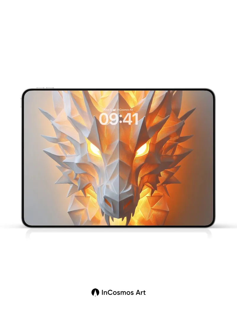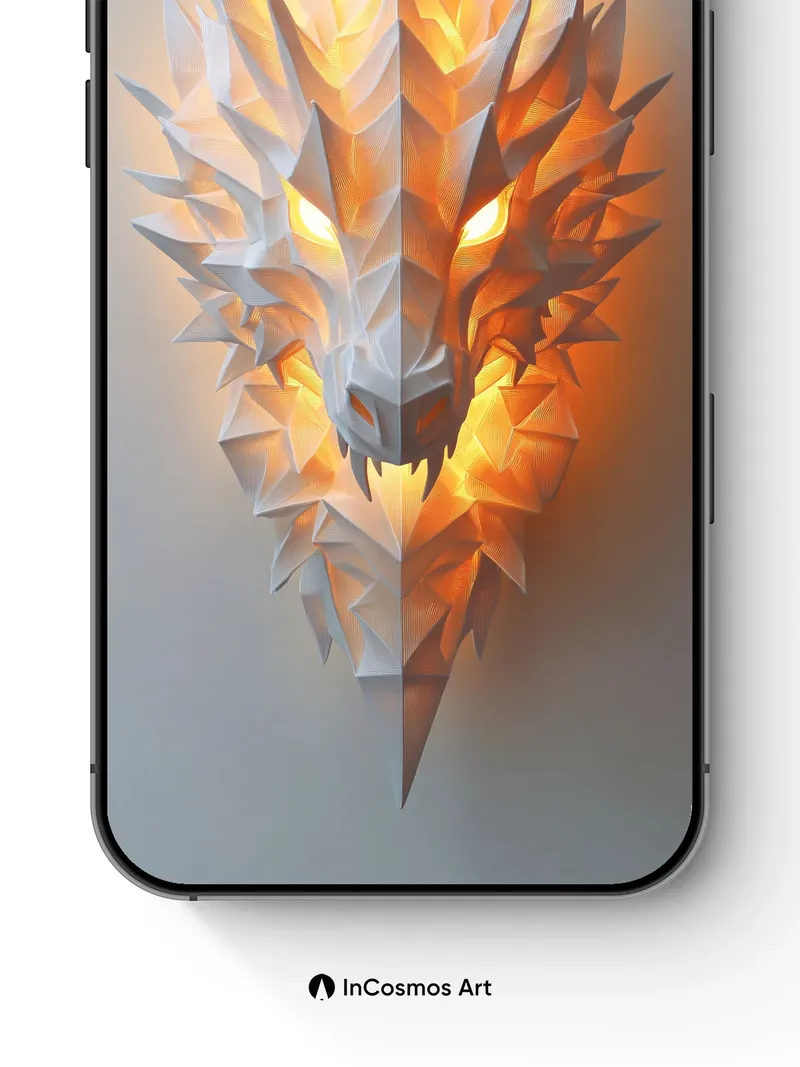 Luminous Dragon Head Wallpaper with Fiery Geometry