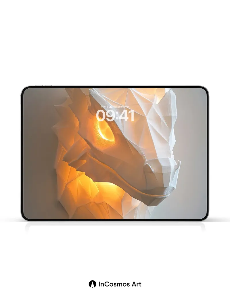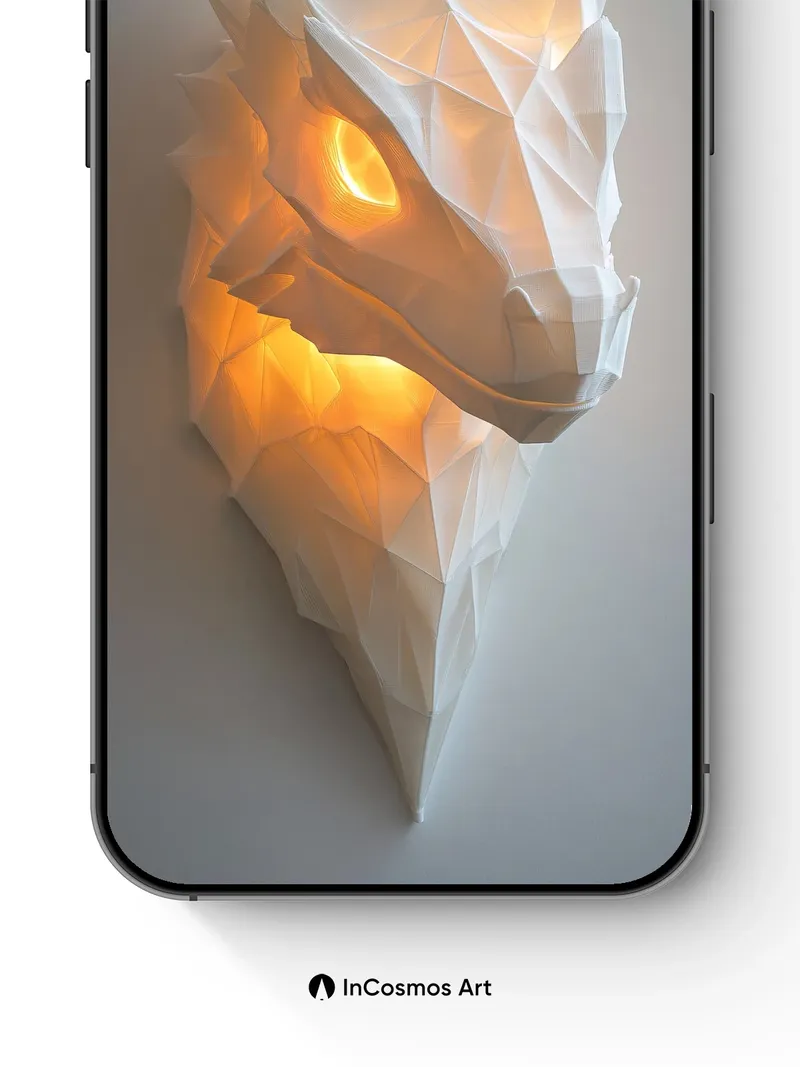 Luminous Dragon Head Wallpaper with Geometric Fire