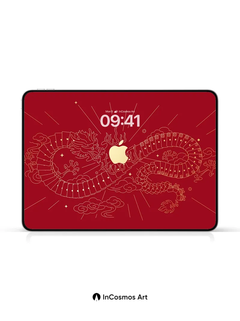 Debug page_description: Did you know ancient Chinese artisans believed dragons could breathe light, not fire? Here, a golden dragon coils across crimson silk, its scales shimmering like molten copper under celestial rays. At its heart, an apple glows—half fruit, half symbol—surrounded by starlight that pulses as if breathing. The dragon’s form is stitched in fine thread, each scale a tiny mirror reflecting the cosmos within. You feel the warmth of tradition and the quiet hum of modern myth. Share this with your best friend. Send this to your love and swap a matching set. What if every bite of an apple unlocked a new constellation?
