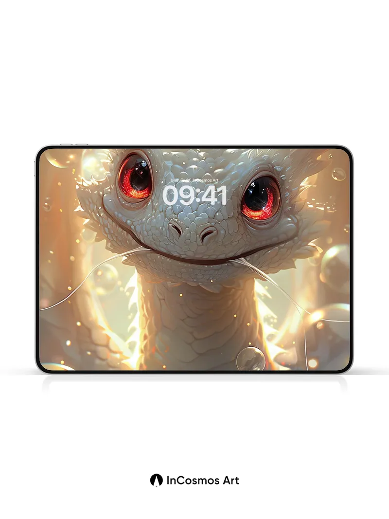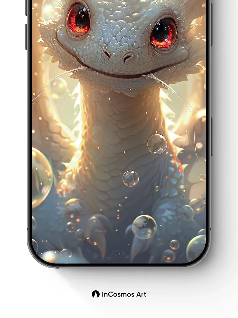 Luminous Dragonling Wallpaper with Floating Bubbles