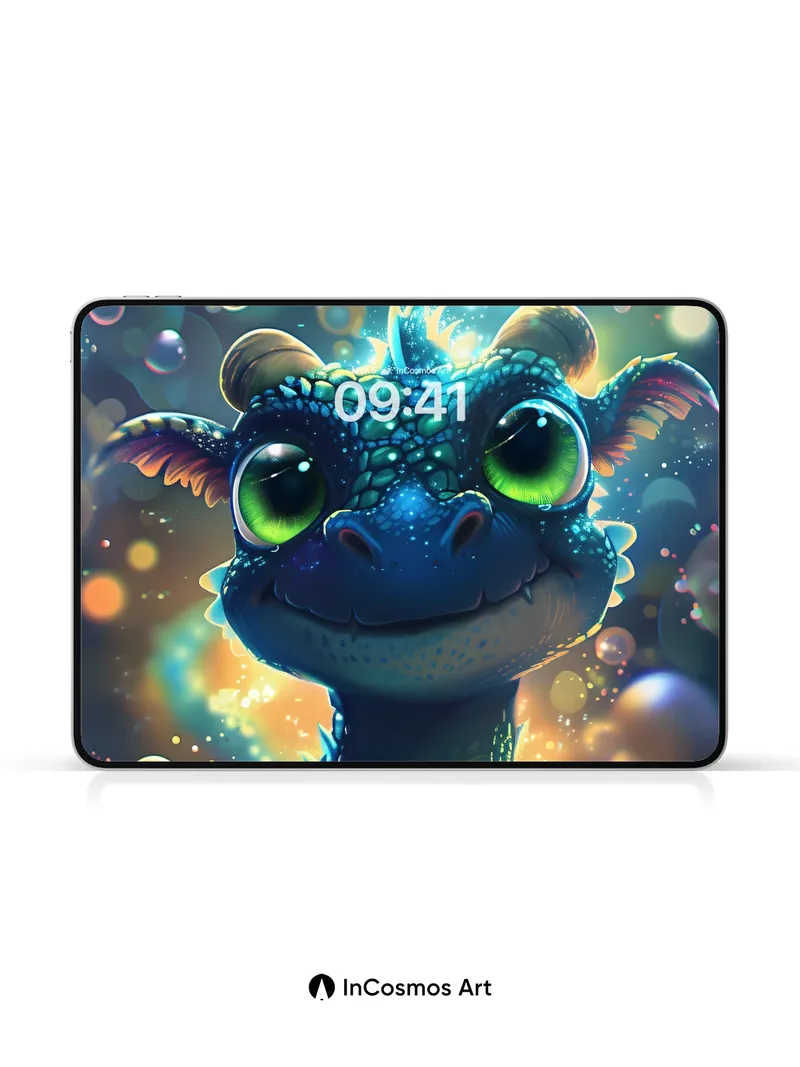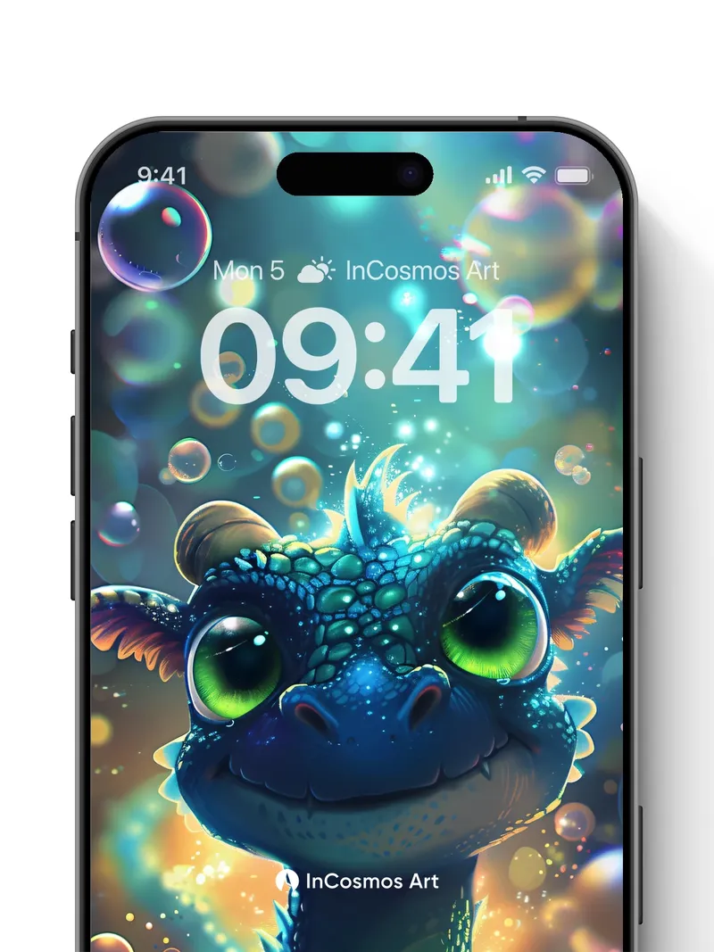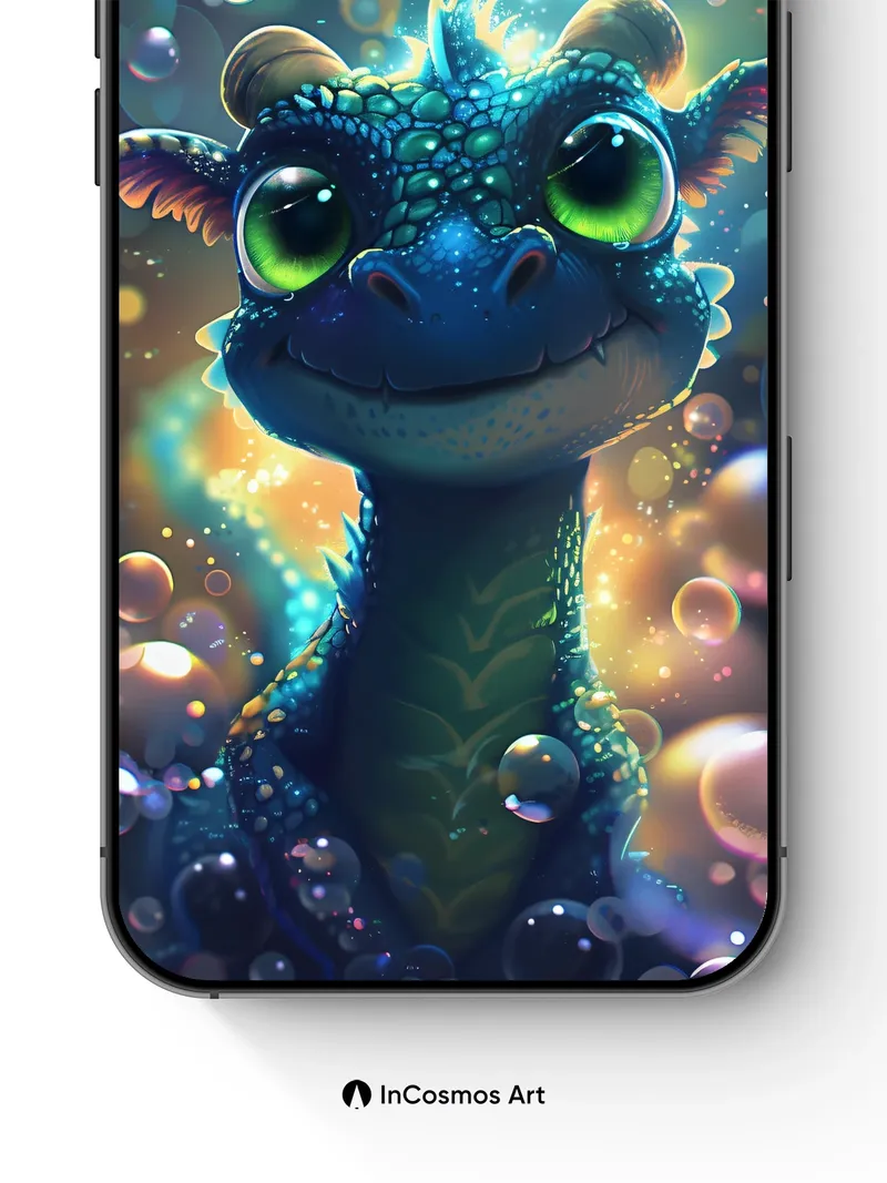 Luminous Dragonling Wallpaper with Floating Bubbles