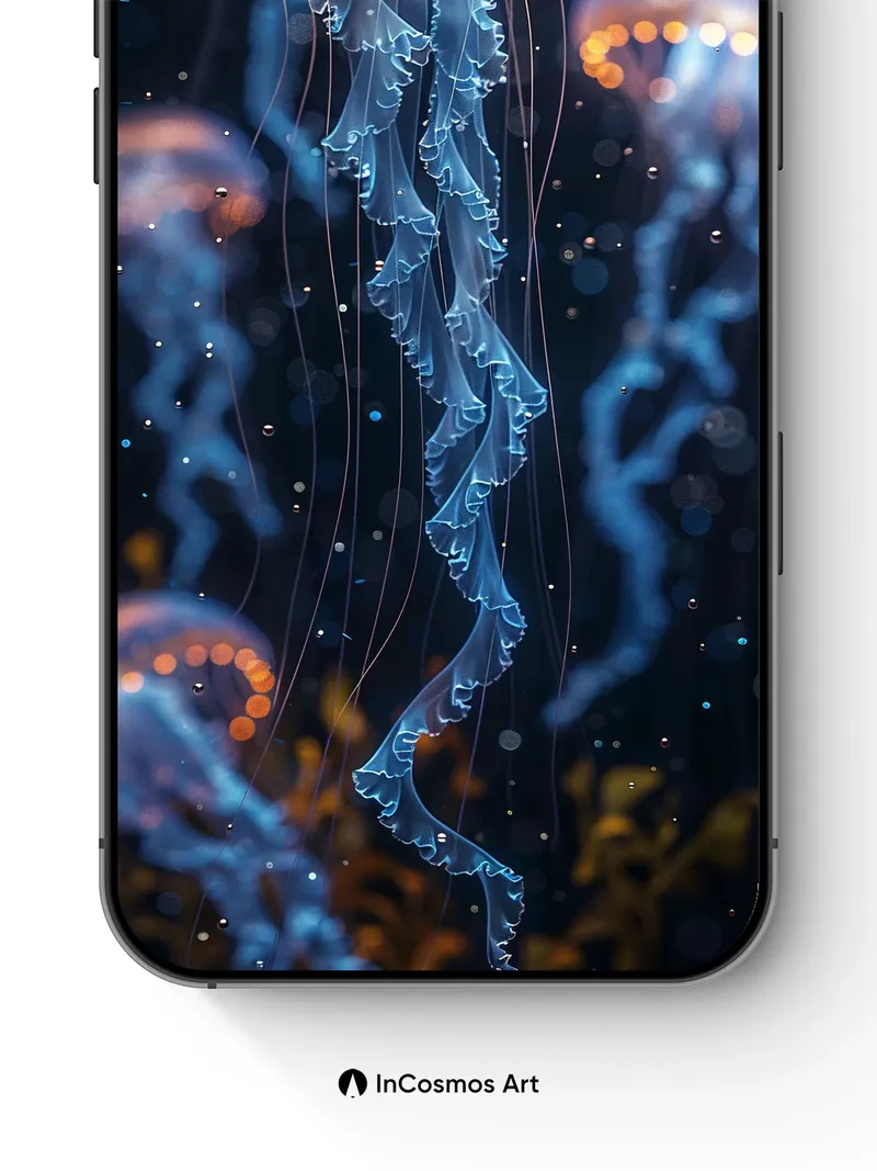 Luminous Drift Wallpaper with Bioluminescent Veils