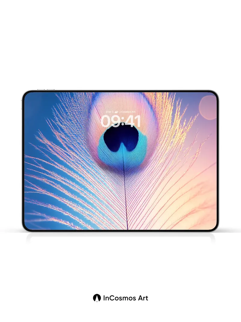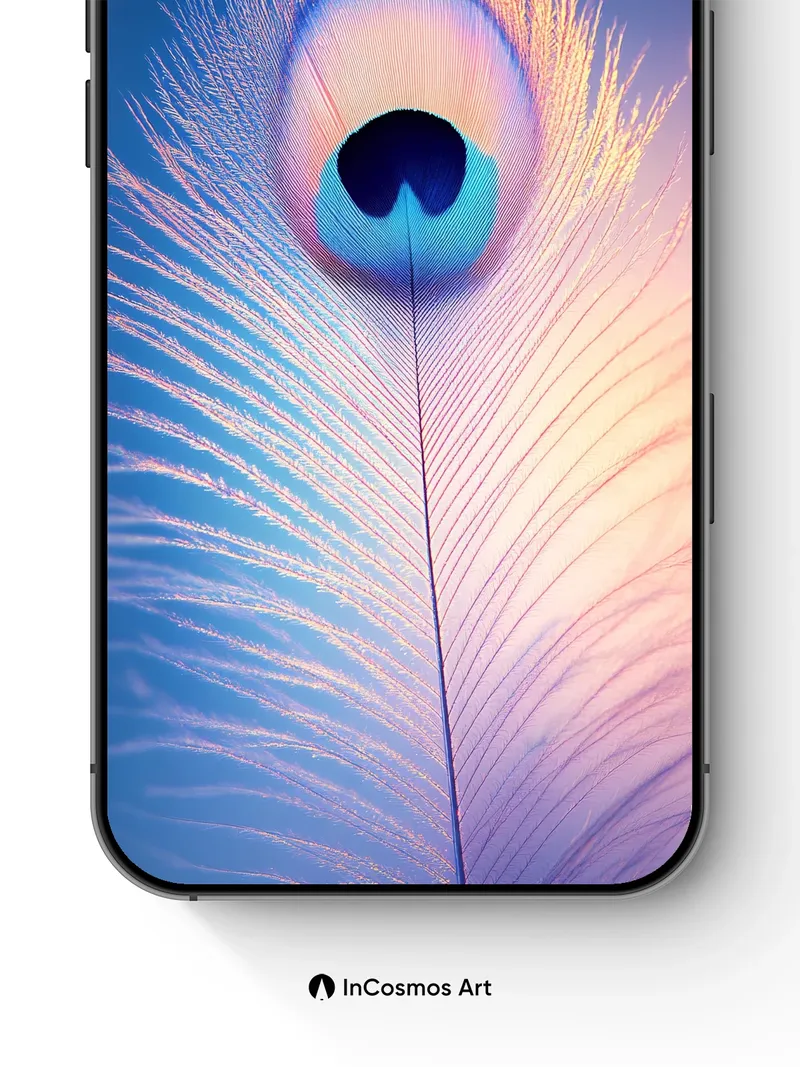 Debug page_description: Did you know peacock feathers refract light through microscopic structures, creating iridescent patterns that shift like liquid rainbows? This feather glows with a soft inner fire, its barbs whispering secrets in pastel gradients, while bokeh orbs float like distant stars in twilight. The eye at its center pulses with quiet depth, inviting you to lose yourself in its hypnotic symmetry. Share this with your best friend. Send this to your love and swap a matching set. What if every glance held a universe waiting to unfold?
