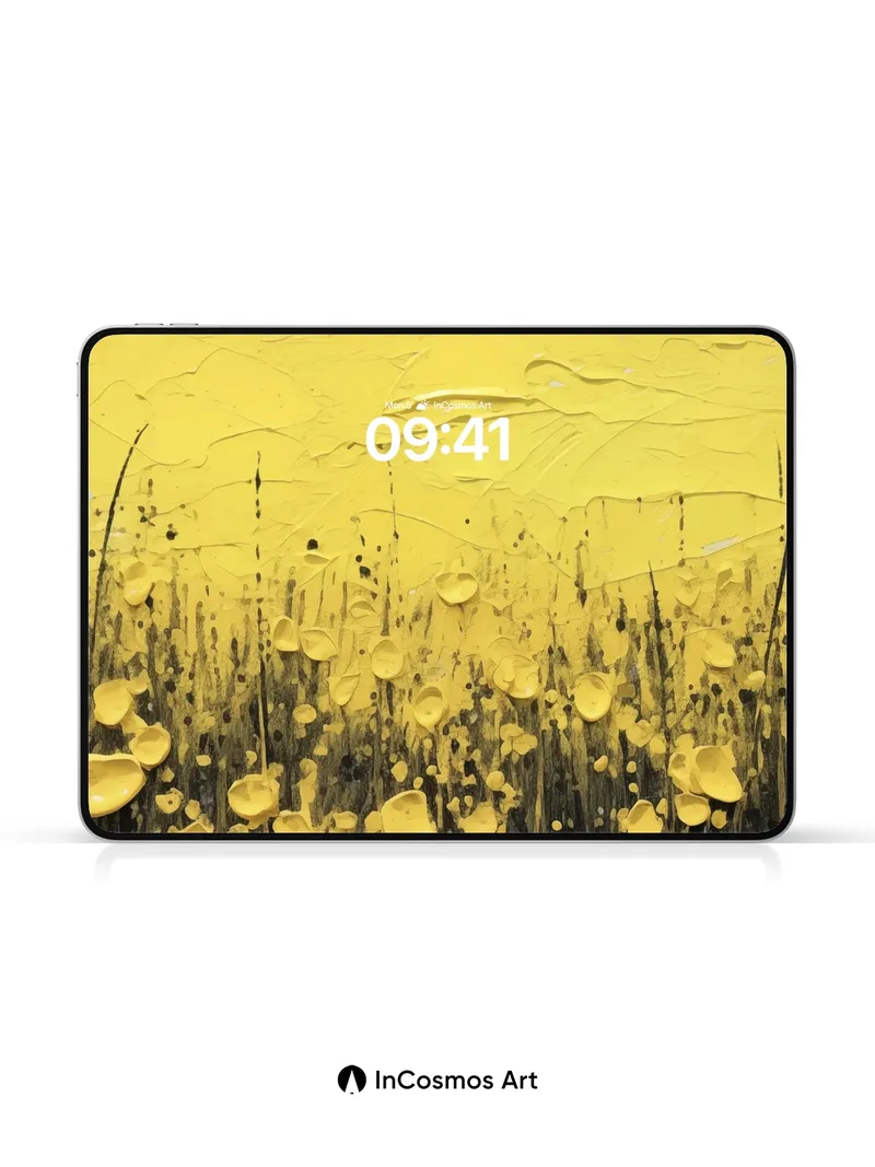 Debug page_description: Did you know that under a full moon, certain pigments in paint can emit a soft glow for up to 12 hours? Here, thick impasto strokes of golden yellow bloom like wildflowers beneath a star-dusted night sky, their surfaces catching light like molten honey. The contrast between the dark, textured earth and the radiant field feels alive—each petal a tiny sun, each stem a whisper of wind. Share this with your best friend. Send this to your love and swap a matching set. What if your walls could hum with the quiet energy of a midnight meadow?