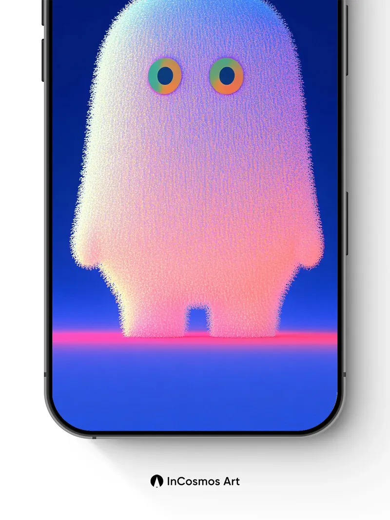 Luminous Fuzz Wallpaper with Neon Eyes