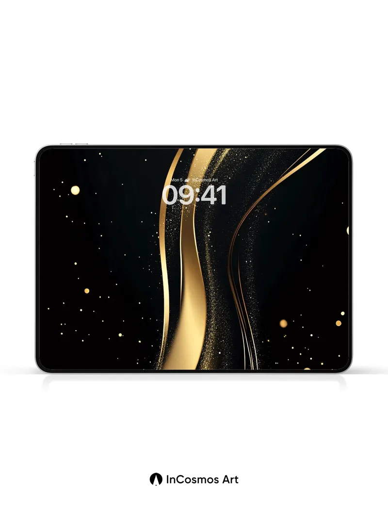 Luminous Gold Wave Wallpaper with Starlight Dust