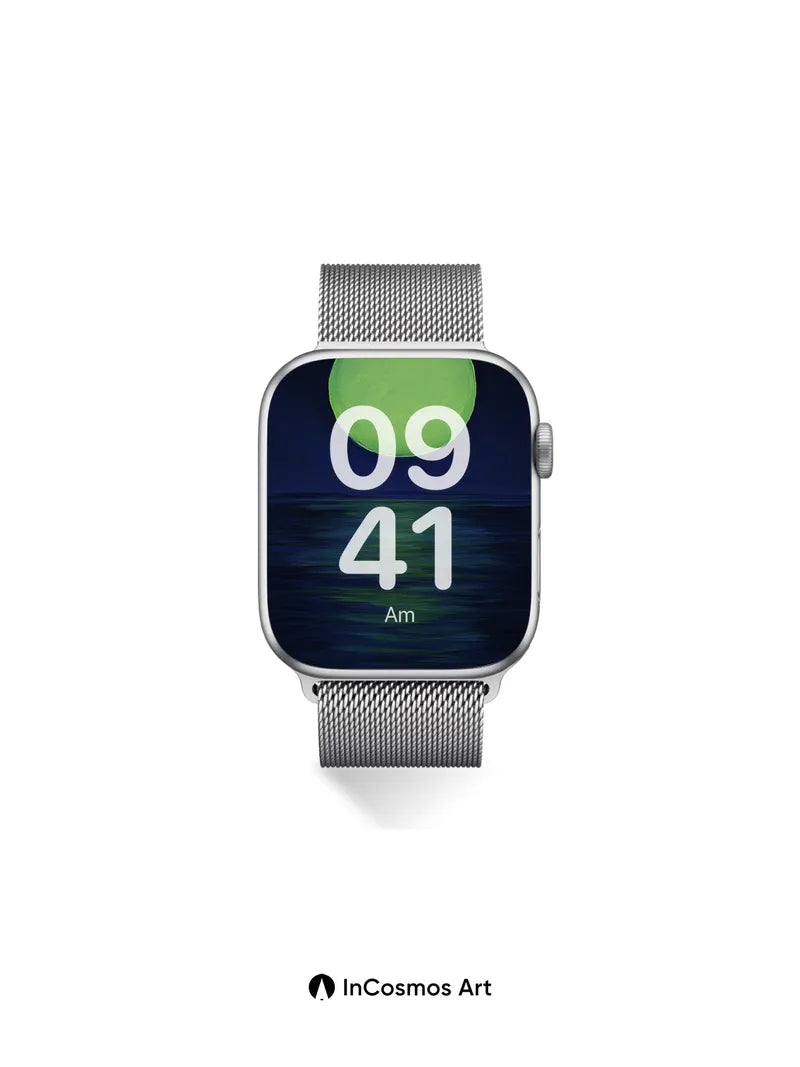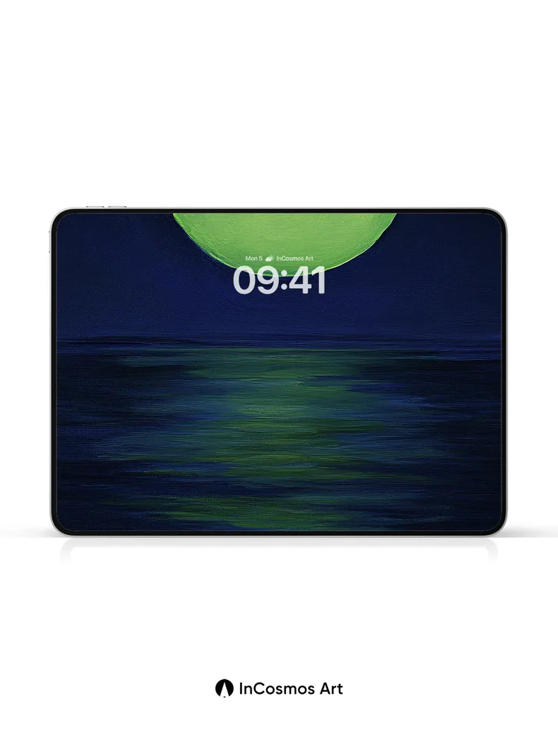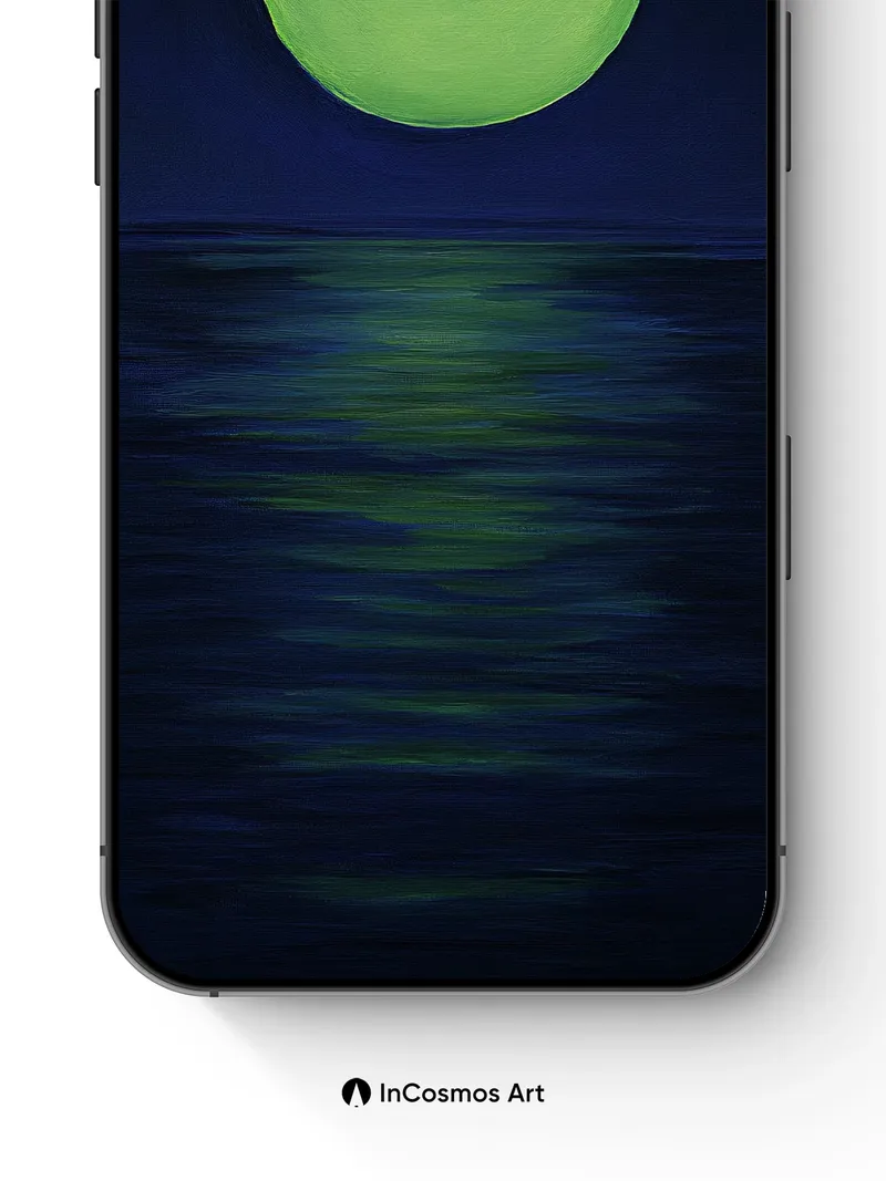 Luminous Green Moon Wallpaper with Ocean Reflection