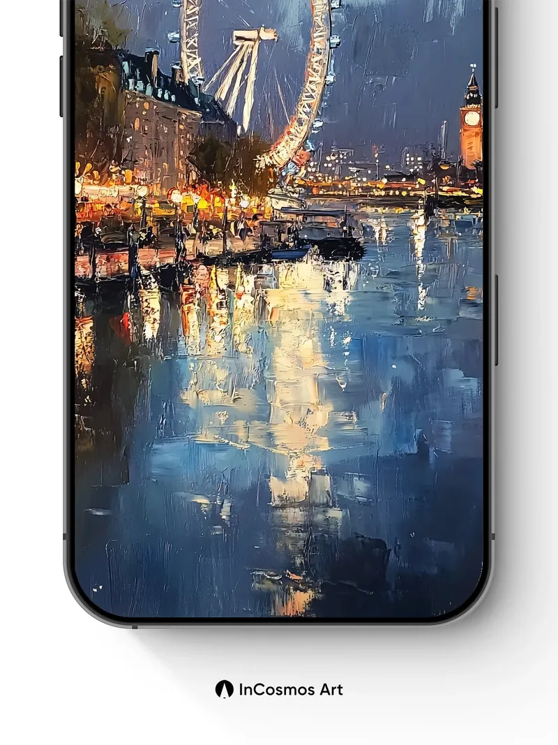 Luminous London Wallpaper with Reflective Water