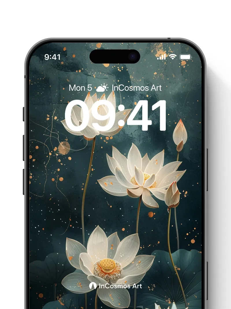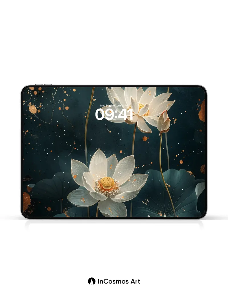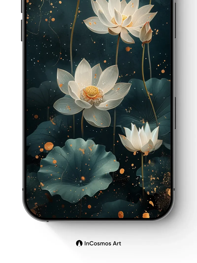 Luminous Lotus Wallpaper with Golden Dust
