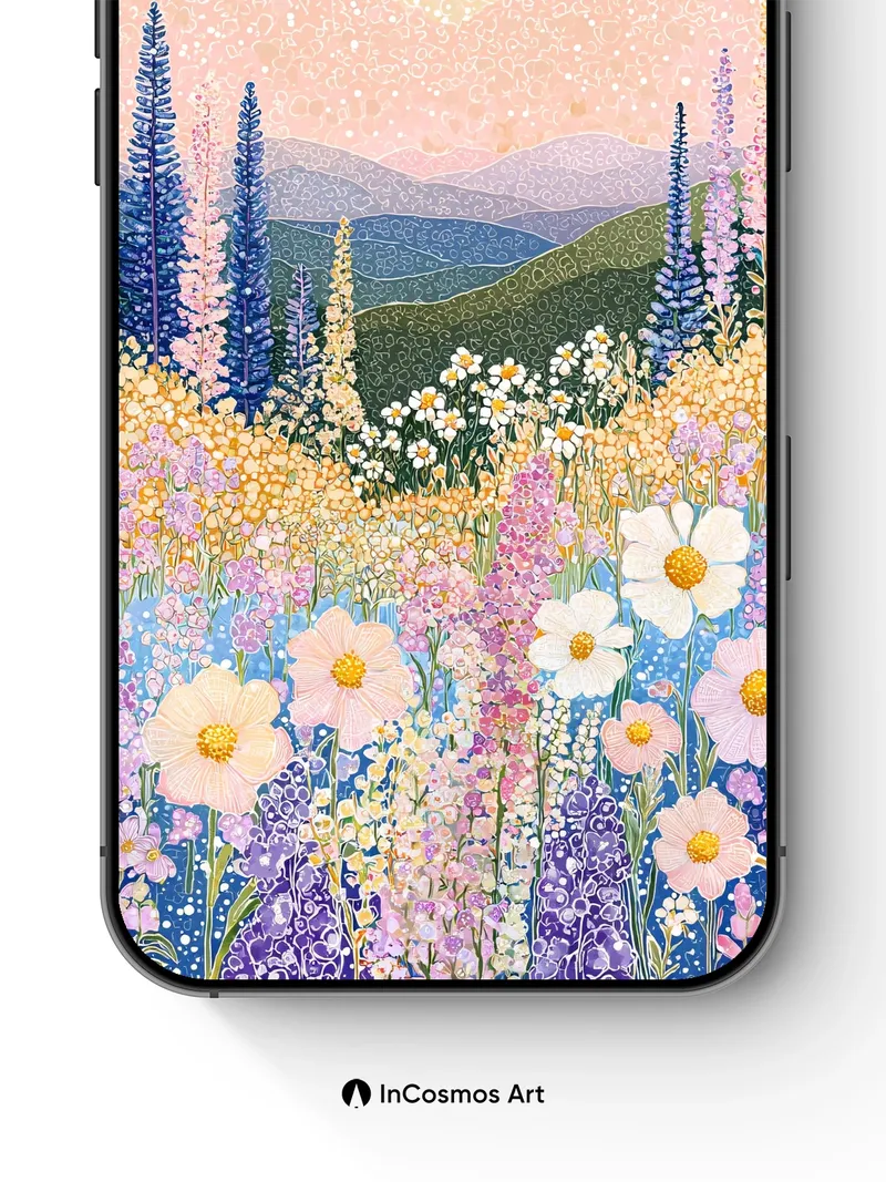 Luminous Meadow Wallpaper with Starlight Petals