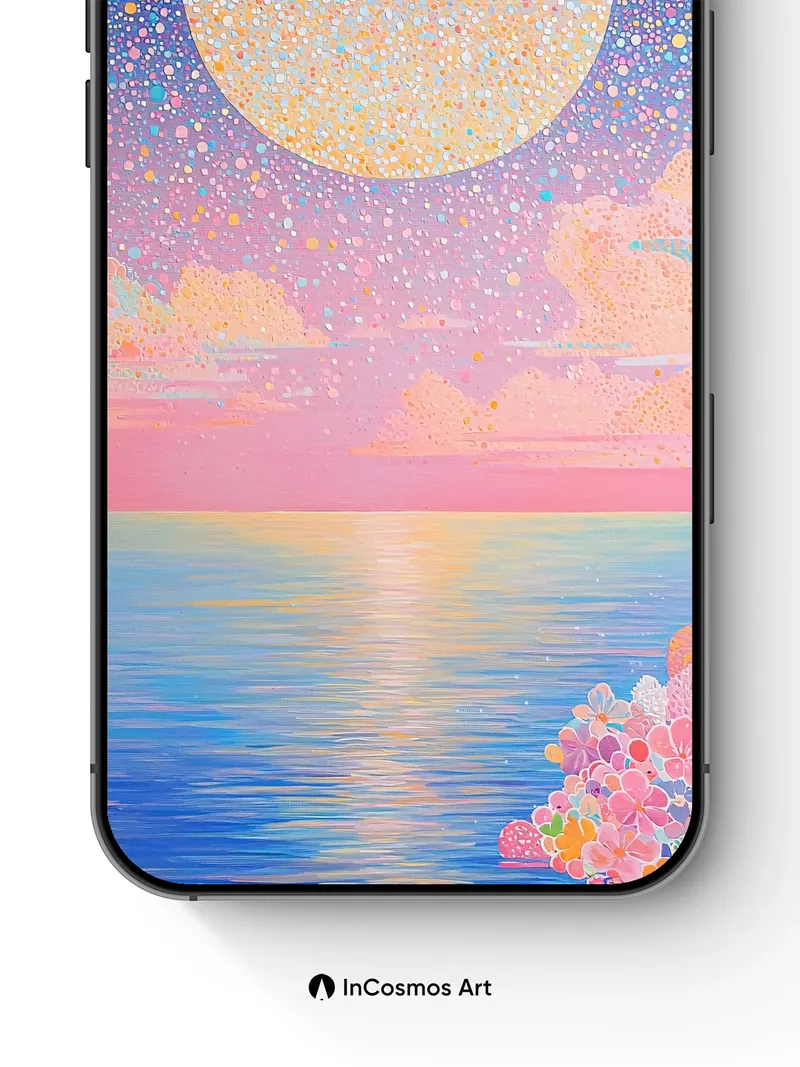 Luminous Moonlit Sea Wallpaper with Polka-Dot Cosmos