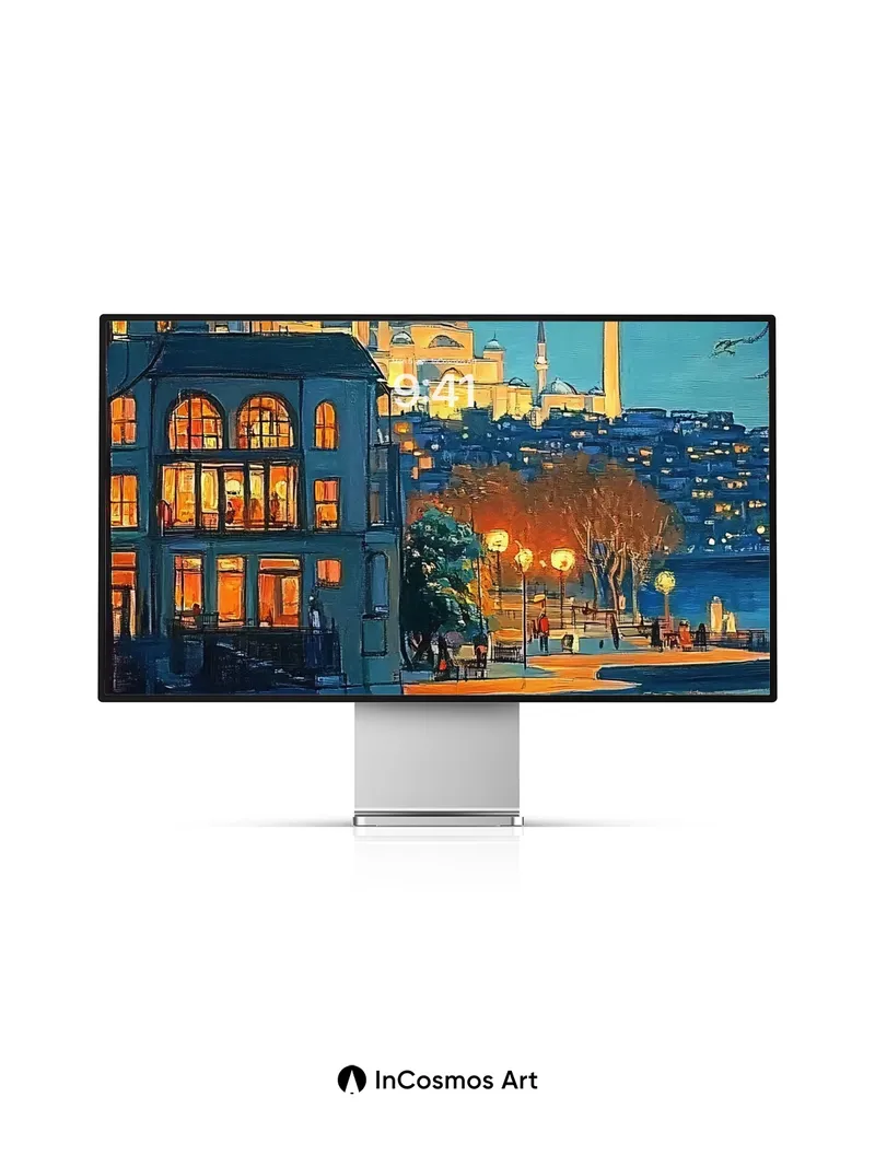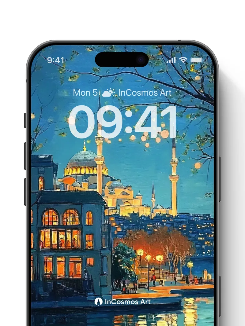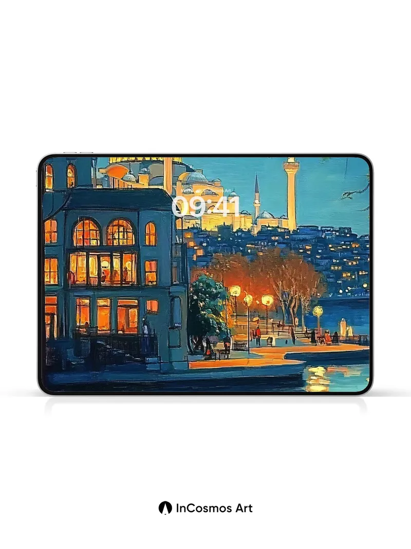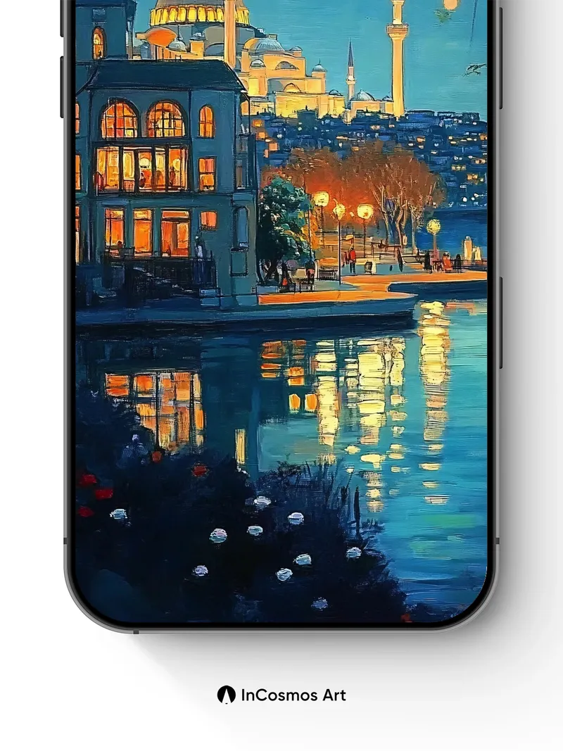 Debug page_description: Did you know the domes of Istanbul’s mosques were once lit by oil lamps that shimmered like stars above the Bosphorus? Now, light crawls over cobblestone paths and dances in golden reflections on still water, where glowing orbs drift between branches like captured fireflies. You can almost hear the quiet hum of evening prayers mingling with distant laughter from a café window, its warm glow spilling into the cool indigo air. Share this with your best friend. Send this to your love and swap a matching set. What if every night sky held a city waiting to be discovered?