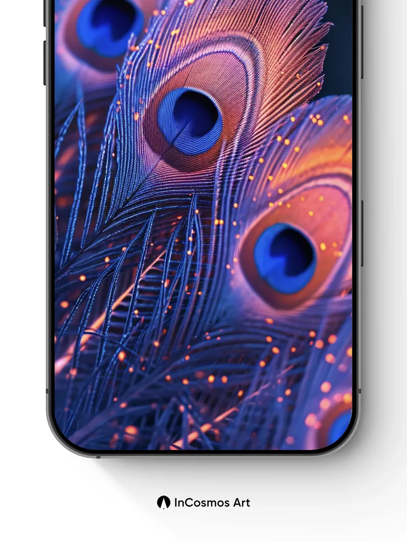 Luminous Peacock Wallpaper with Cosmic Eyes