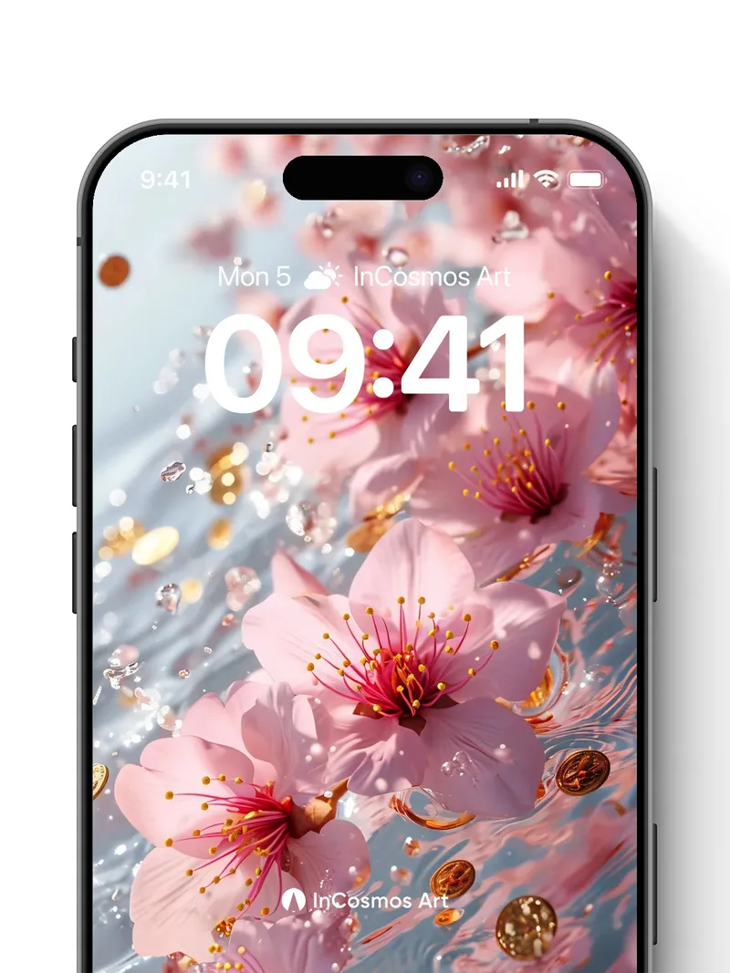 Debug product.metafields.custom.desc: Did you know cherry blossoms symbolize the fleeting nature of life in Japanese culture? Here, they drift like whispered secrets across water, each petal veined with rose-gold stamens and kissed by droplets that refract light into prismatic sparks. Beneath them, scattered gold coins shimmer like forgotten wishes, half-submerged in a liquid sky where reflection and reality blur into one breathless moment.