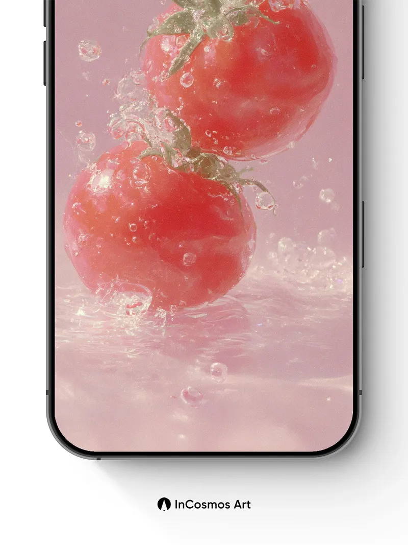 Luminous Plumage Wallpaper with Floating Tomatoes