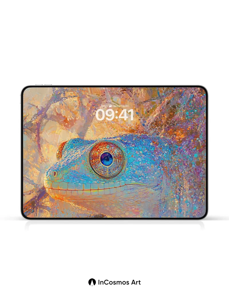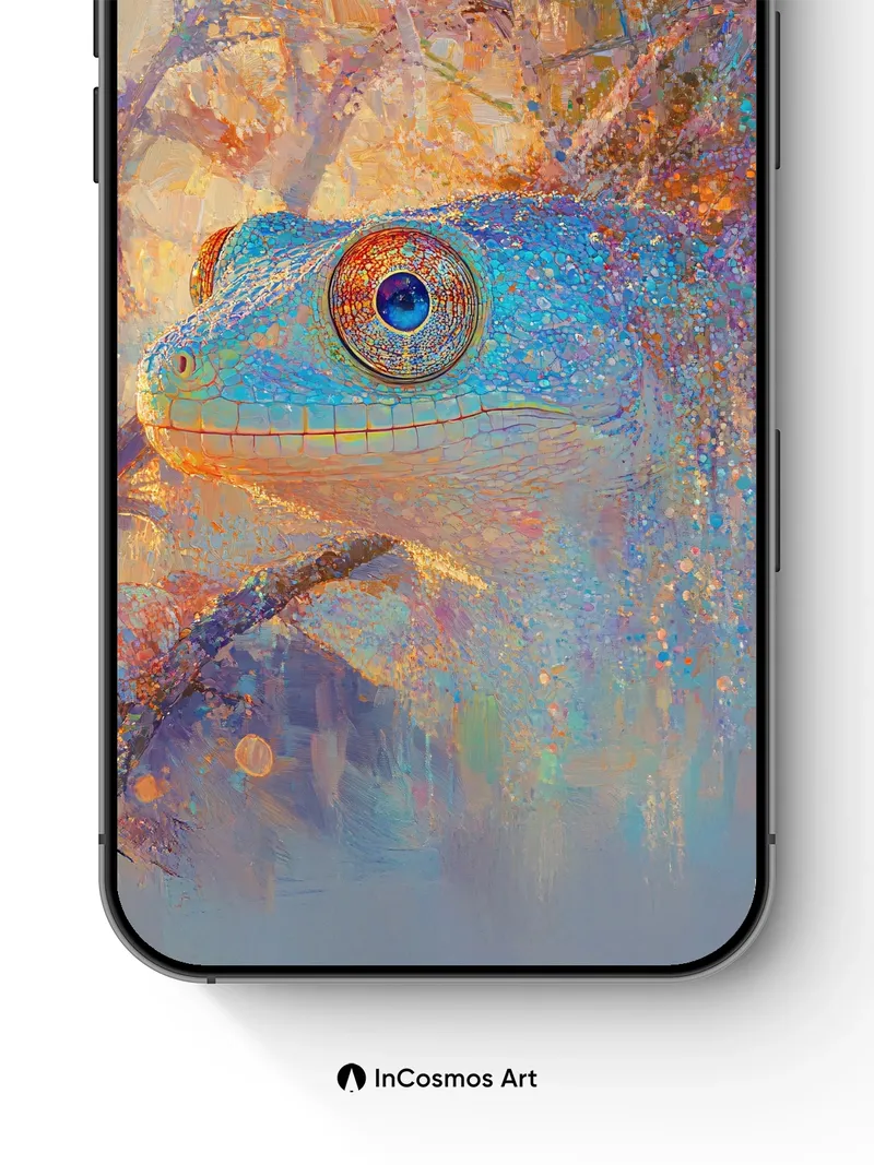 Luminous Reptile Wallpaper with Cosmic Eyes