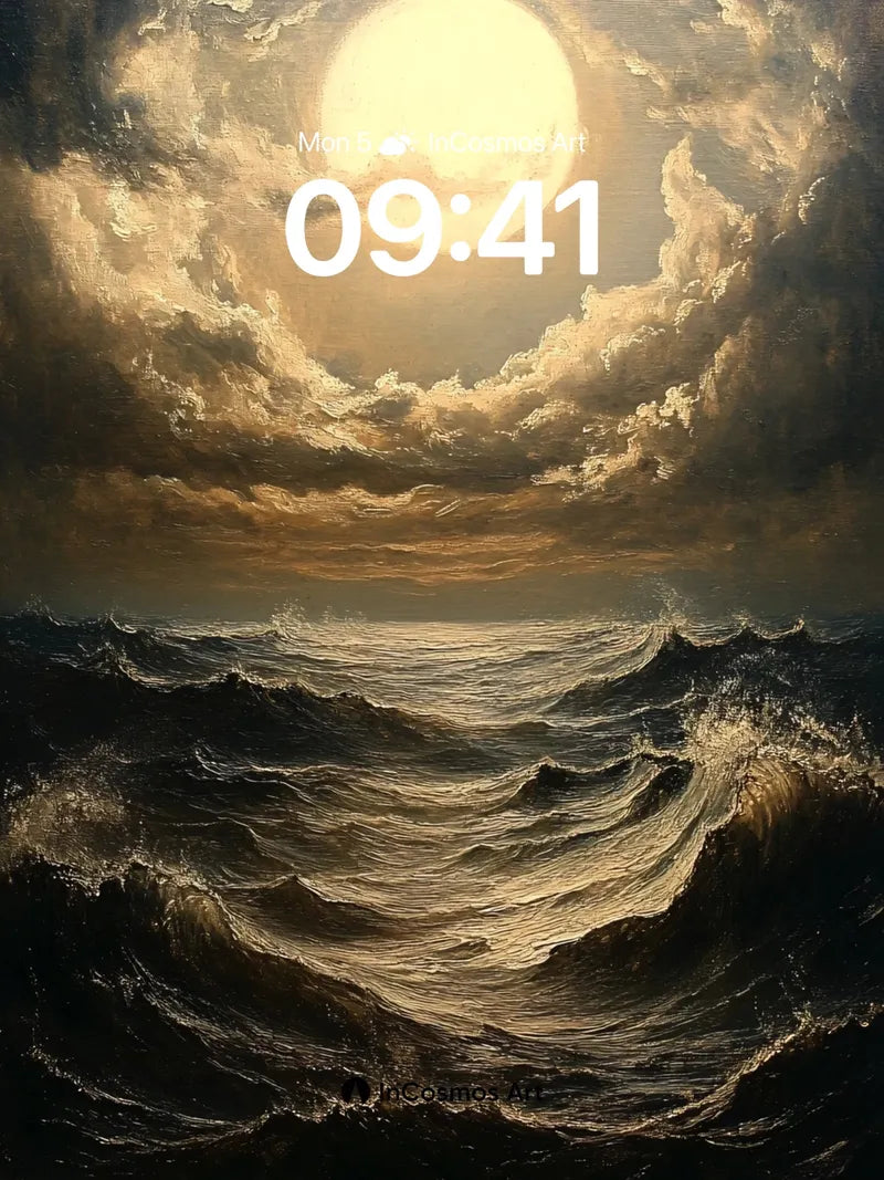 Luminous Sea Storm Wallpaper with Moonlit Swells