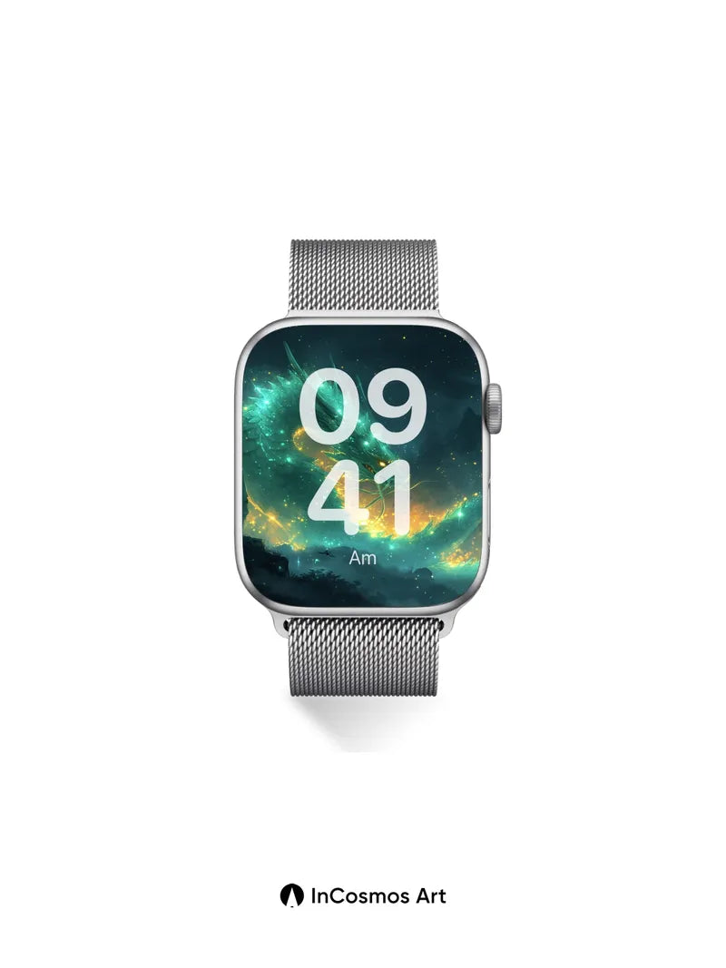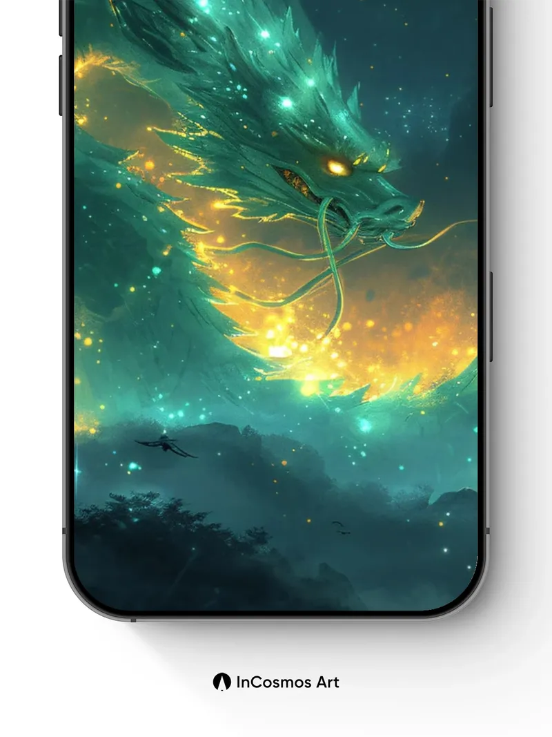 Debug product.metafields.custom.desc: Did you know ancient Chinese legends describe dragons as celestial beings born from mist and lightning? Here, emerald scales shimmer like liquid jade under a sky scattered with golden sparks, while the dragon’s breath weaves through mountain silhouettes like glowing silk. A lone figure stands in quiet reverence, dwarfed by the creature’s serpentine grace—its eyes aglow with distant stars.