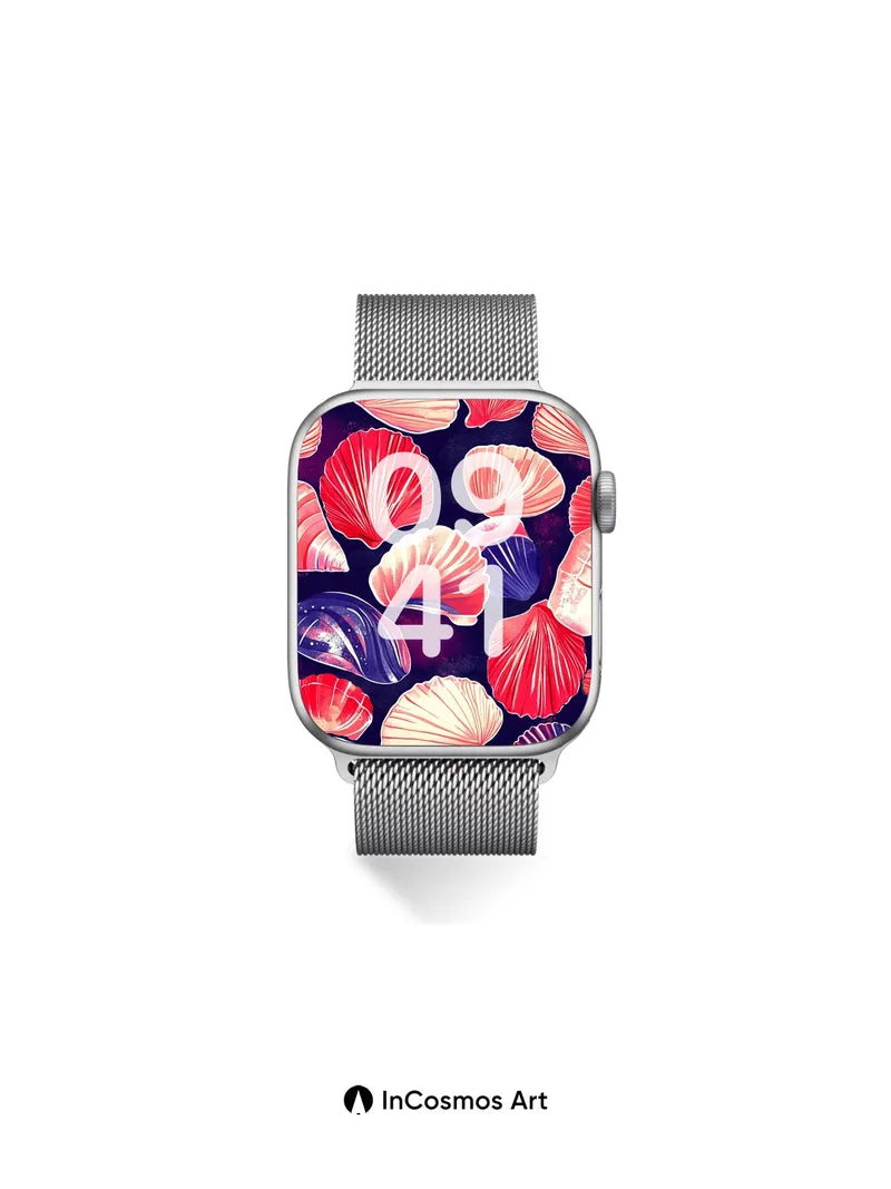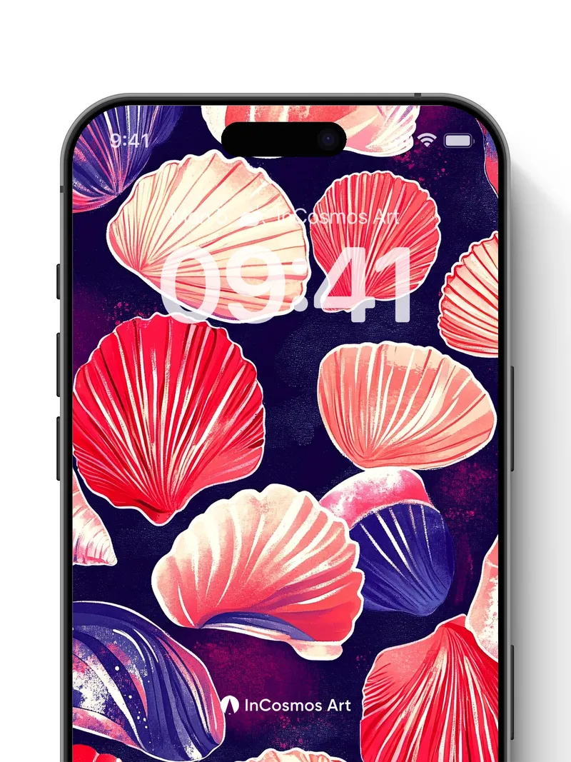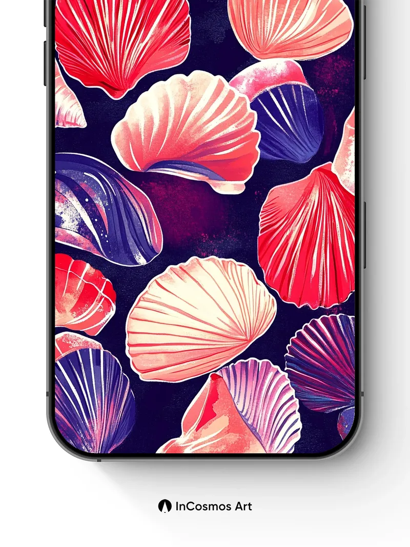 Debug product.metafields.custom.desc: Did you know that scallop shells have been used in ancient navigation rituals, their ridges mimicking star charts? Here, they float like celestial fragments against a velvet void, each curve catching light as if breathing underwater fire. The deep indigo background pulses with nebula-like gradients, while the shells shimmer with iridescent edges—pink, coral, and violet hues swirling like galaxies in reverse.