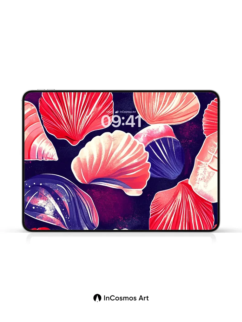 Debug page_description: Did you know that scallop shells have been used in ancient navigation rituals, their ridges mimicking star charts? Here, they float like celestial fragments against a velvet void, each curve catching light as if breathing underwater fire. The deep indigo background pulses with nebula-like gradients, while the shells shimmer with iridescent edges—pink, coral, and violet hues swirling like galaxies in reverse. Share this with your best friend. Send this to your love and swap a matching set. What if your walls could whisper secrets from the ocean’s deepest trenches?