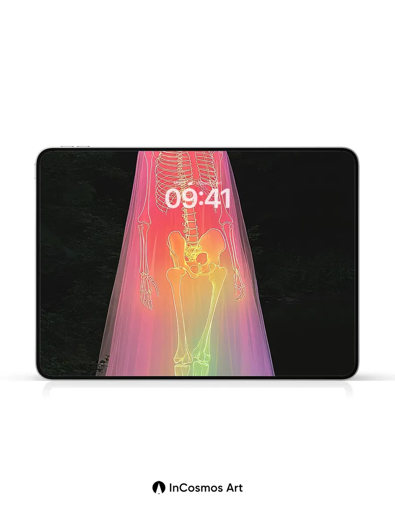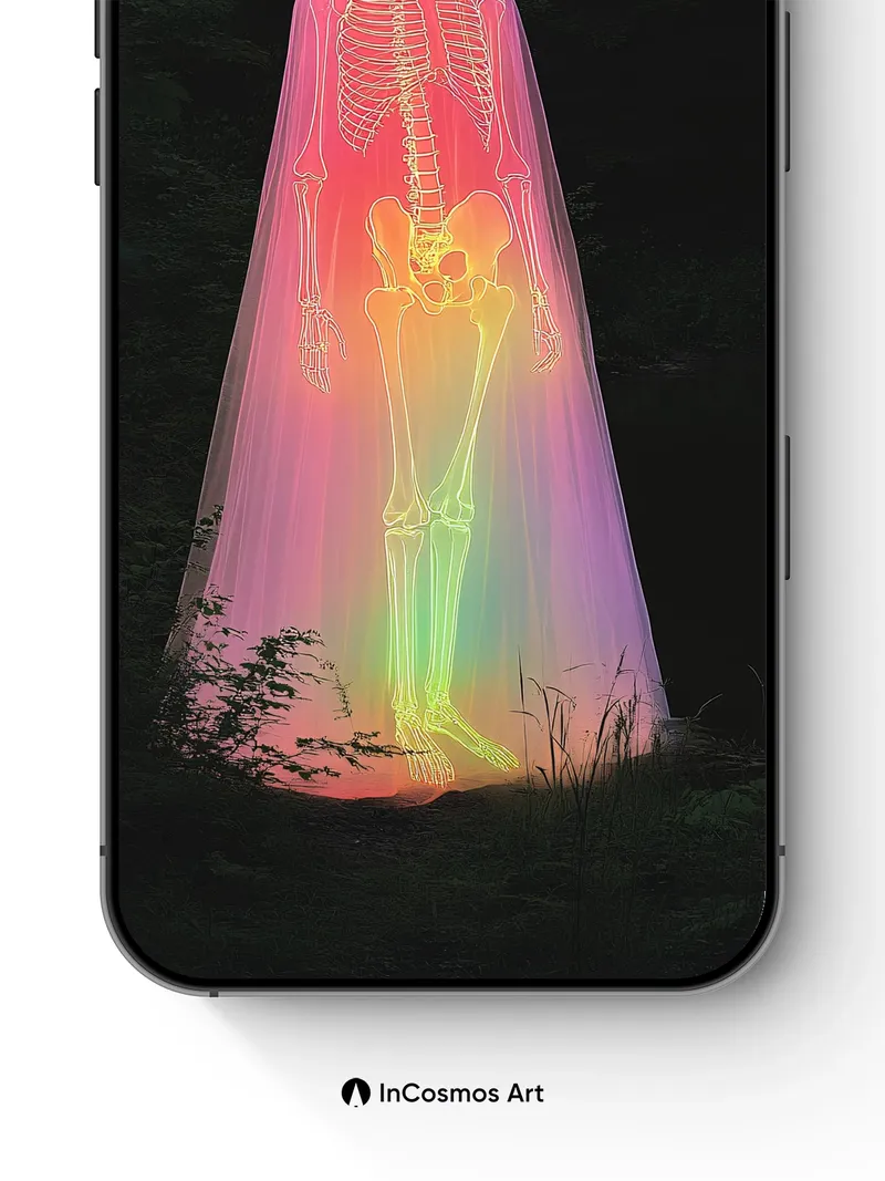 Luminous Skeletal Mirage Wallpaper with Rainbow Veil