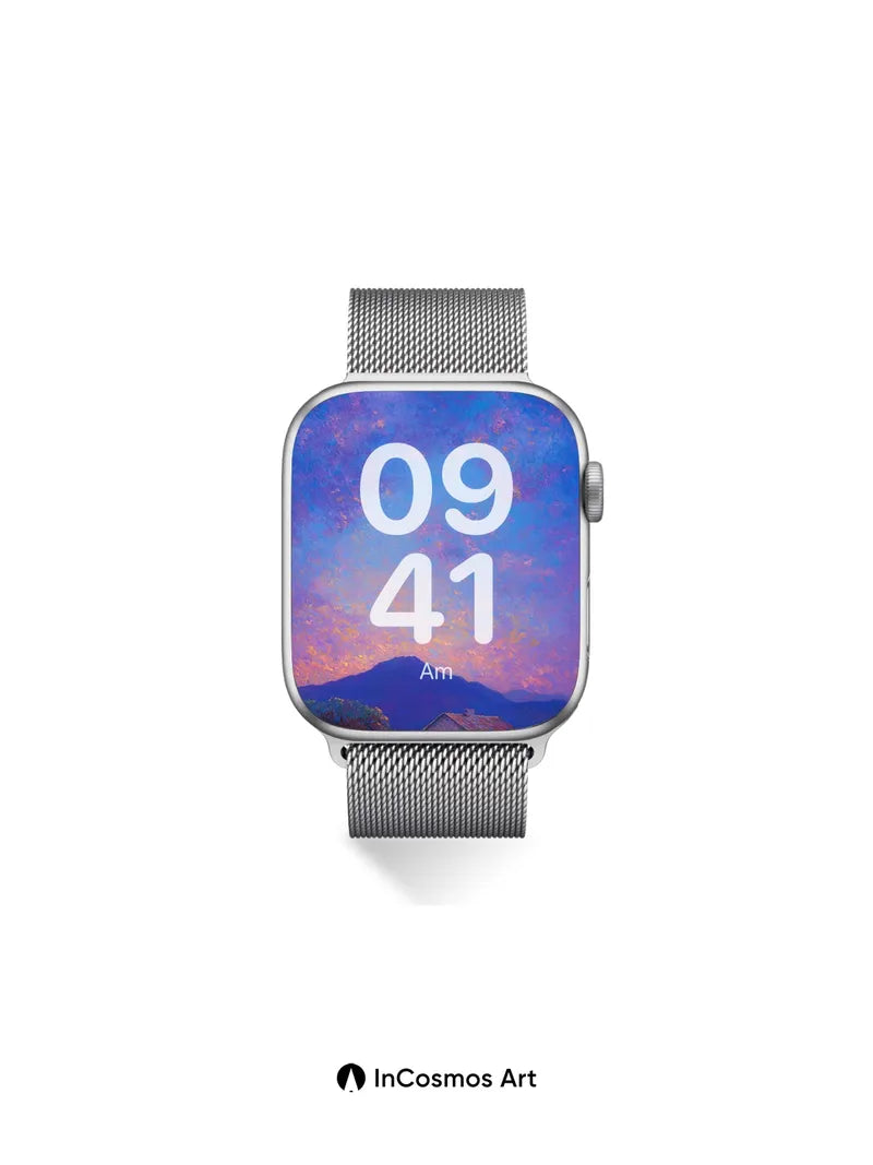 Debug product.metafields.custom.desc: Did you know the crescent moon casts a soft, ethereal light that can make shadows feel like whispers? In this scene, twilight bleeds into indigo as a single warm glow spills from a cottage’s window, painting the meadow in quiet gold. The sky hums with layered hues—lavender clouds drift like silk over distant peaks, while the earth breathes in violet and amber.