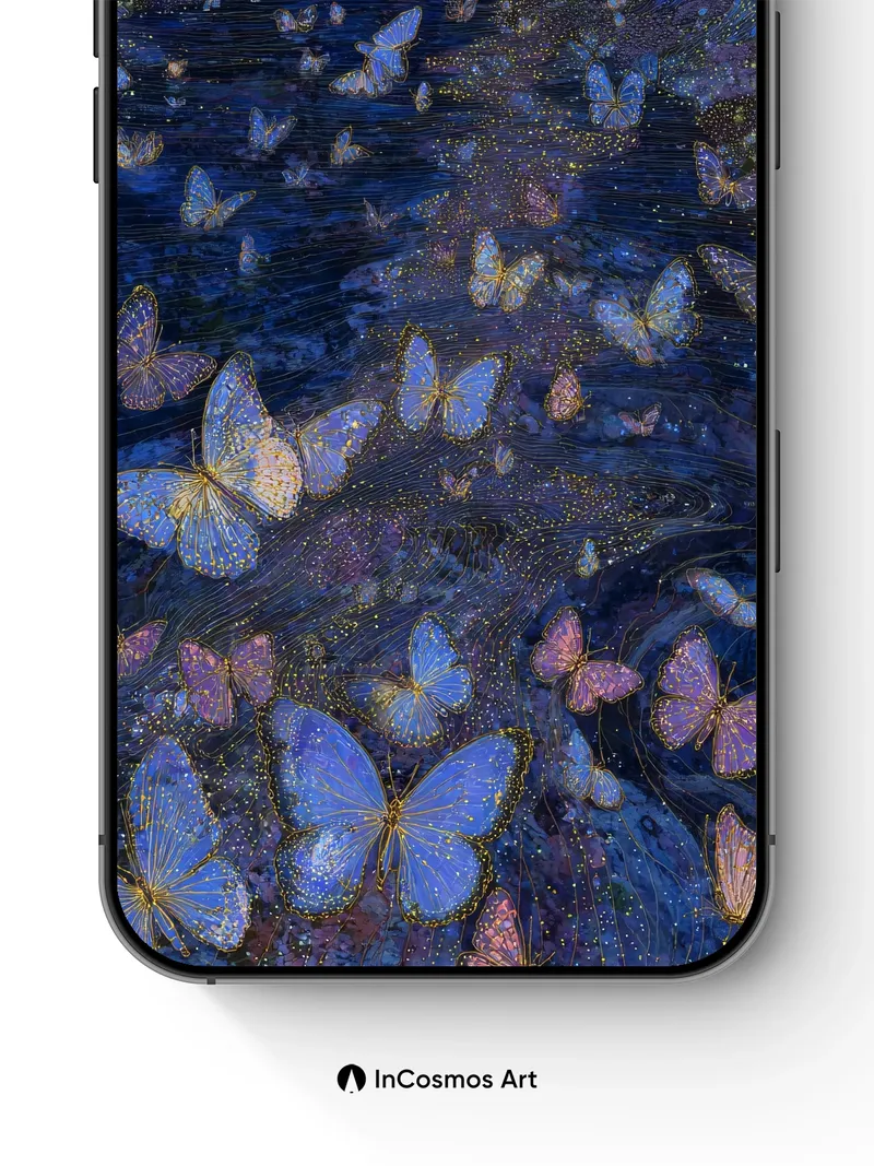Luminous Tunnel Wallpaper with Starlit Butterflies