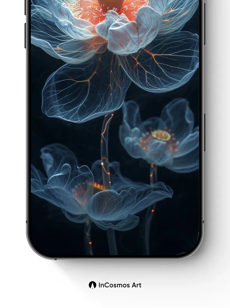 Luminous Veil Wallpaper with Bioluminescent Petals