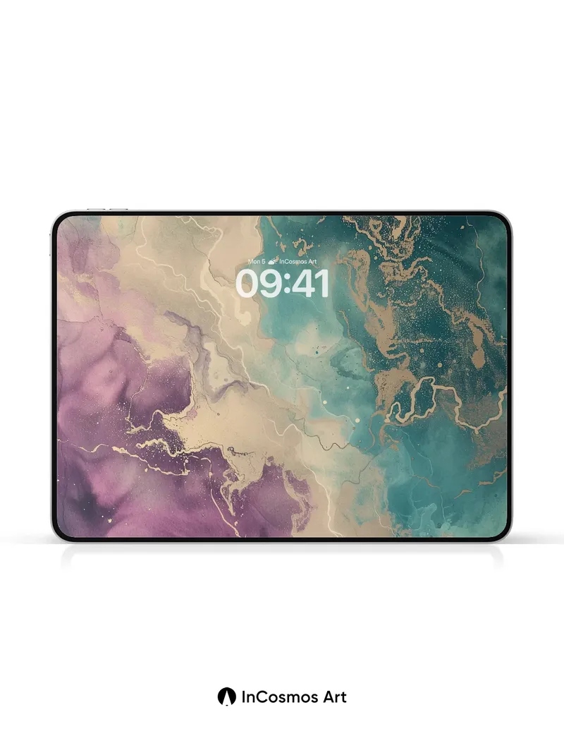 Debug page_description: Did you know ancient alchemists believed certain pigments could capture starlight? Here, color breathes like a living nebula—teal currents weave through molten gold veins, while violet mist curls across a bed of celestial dust. You’re not just seeing texture; you’re touching the edge of a dream universe where light crawls over liquid stone and silence hums in every fold. Share this with your best friend. Send this to your love and swap a matching set. What if your walls could remember the night sky?