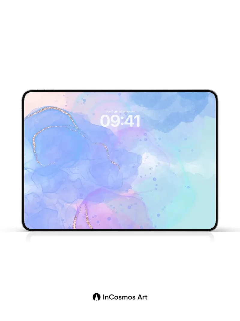 Debug page_description: Did you know that ancient artisans used crushed mica to make surfaces shimmer like starlight? Here, color breathes through translucent waves, where soft blues and pinks dissolve into each other like morning mist over still water. Delicate golden threads trace invisible paths across the canvas, catching light as if they’re alive—each curve a whisper of motion in a world suspended between dream and dawn. Share this with your best friend. Send this to your love and swap a matching set. What if every glance at your screen could transport you to a quiet moment before the world wakes?