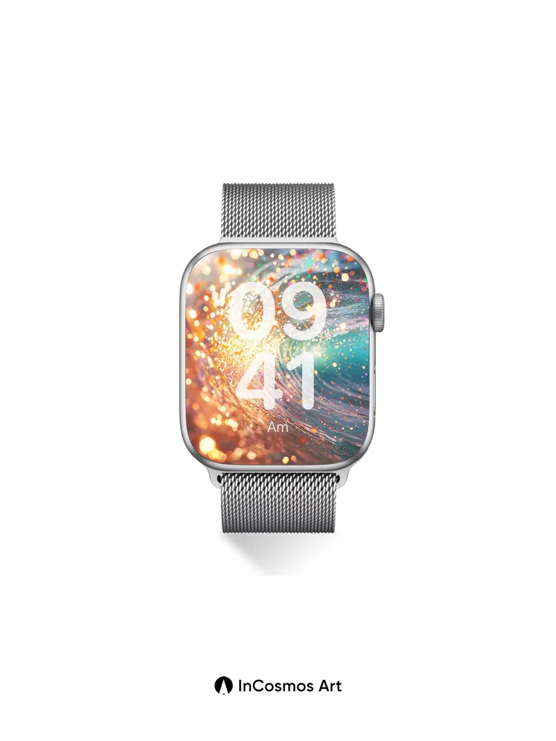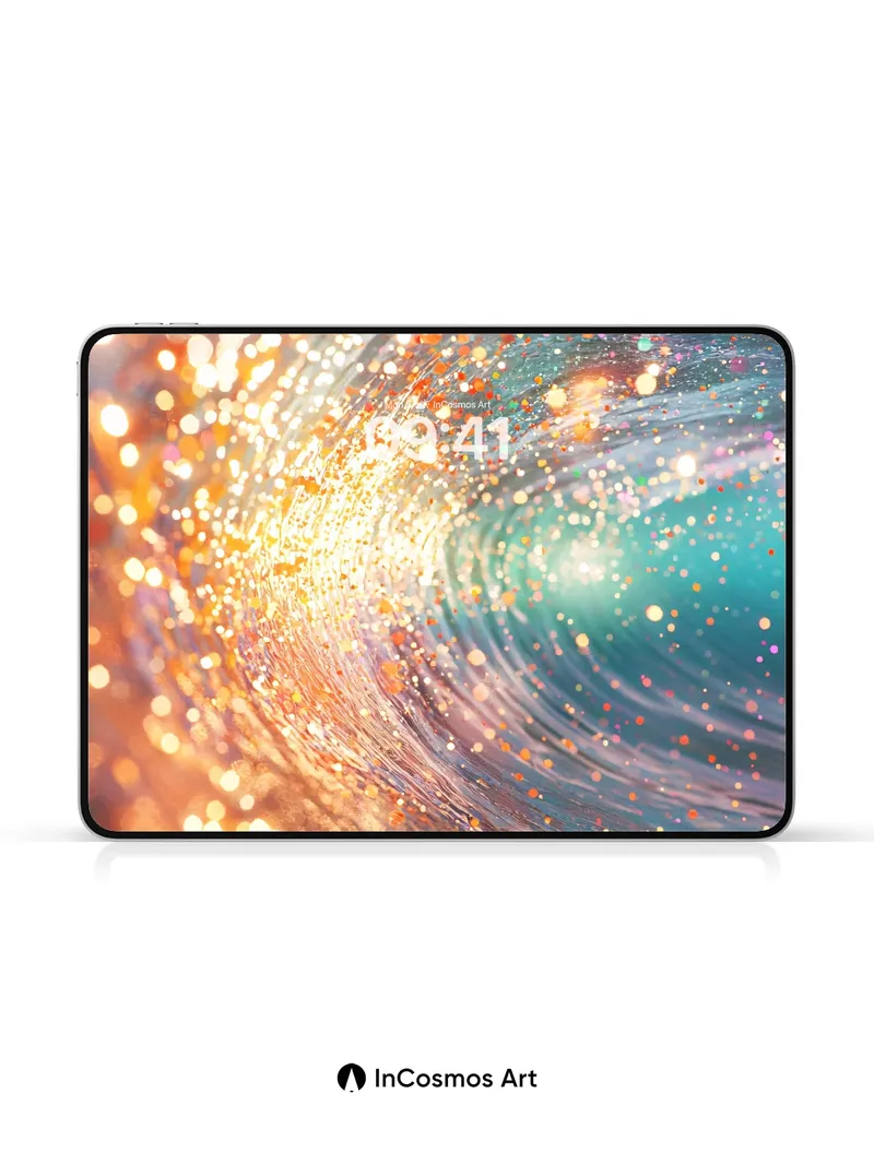 Luminous Wave Wallpaper with Cosmic Sparkle