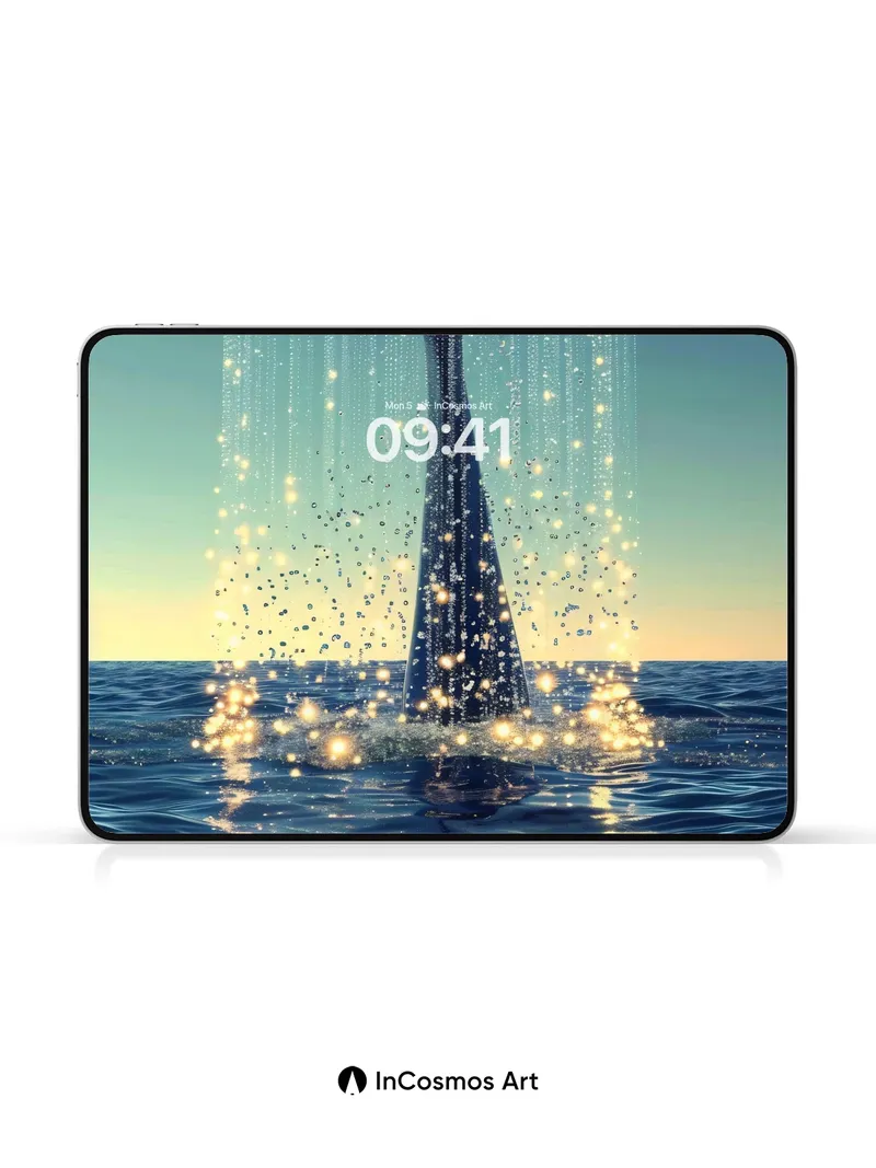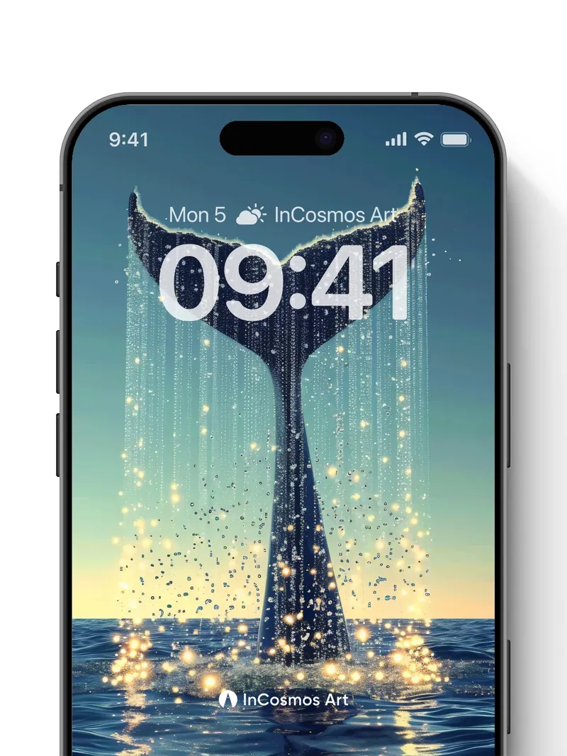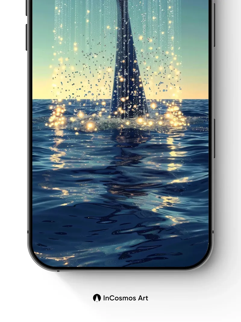 Luminous Whale Tail Wallpaper with Starlight Cascade