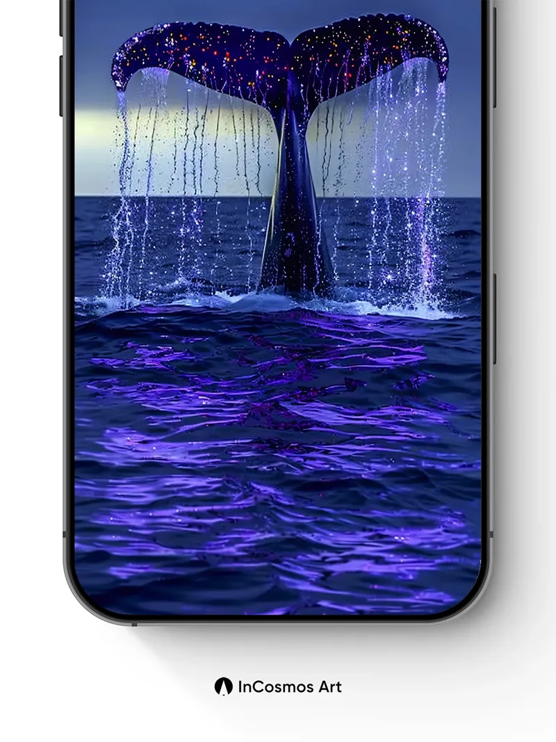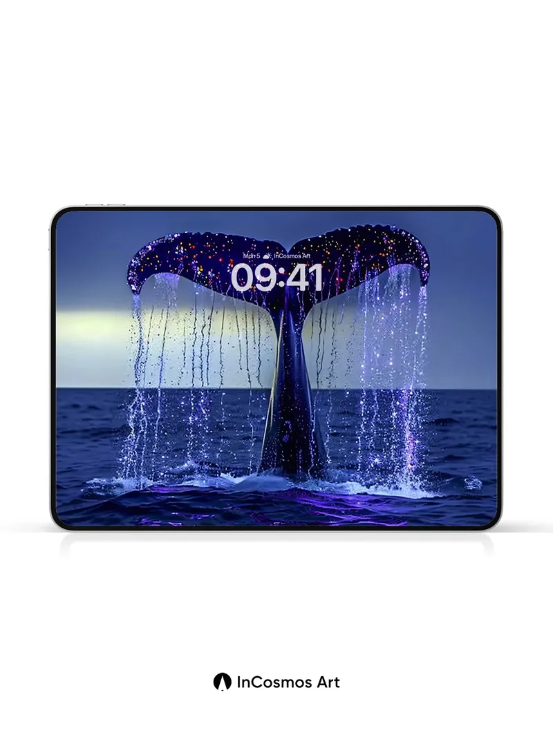Luminous Whale Tail Wallpaper with Starlight Droplets