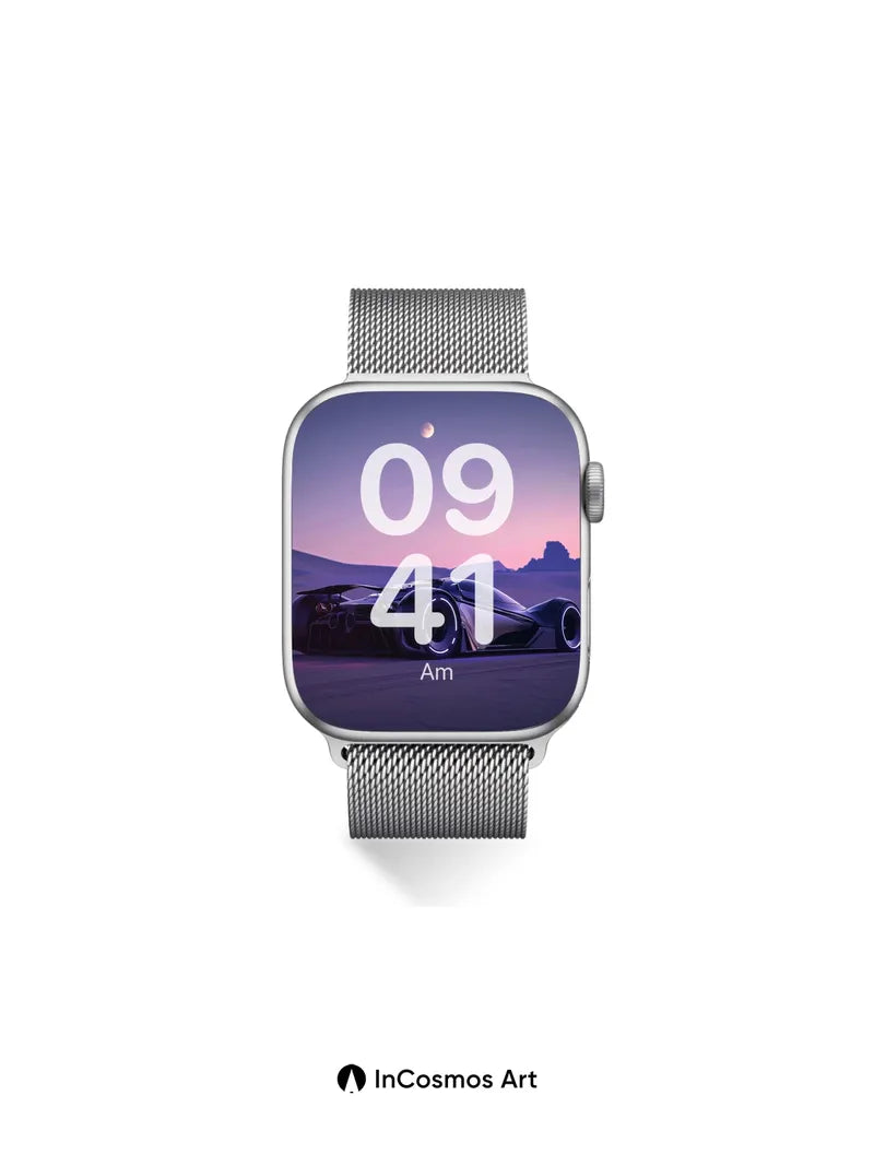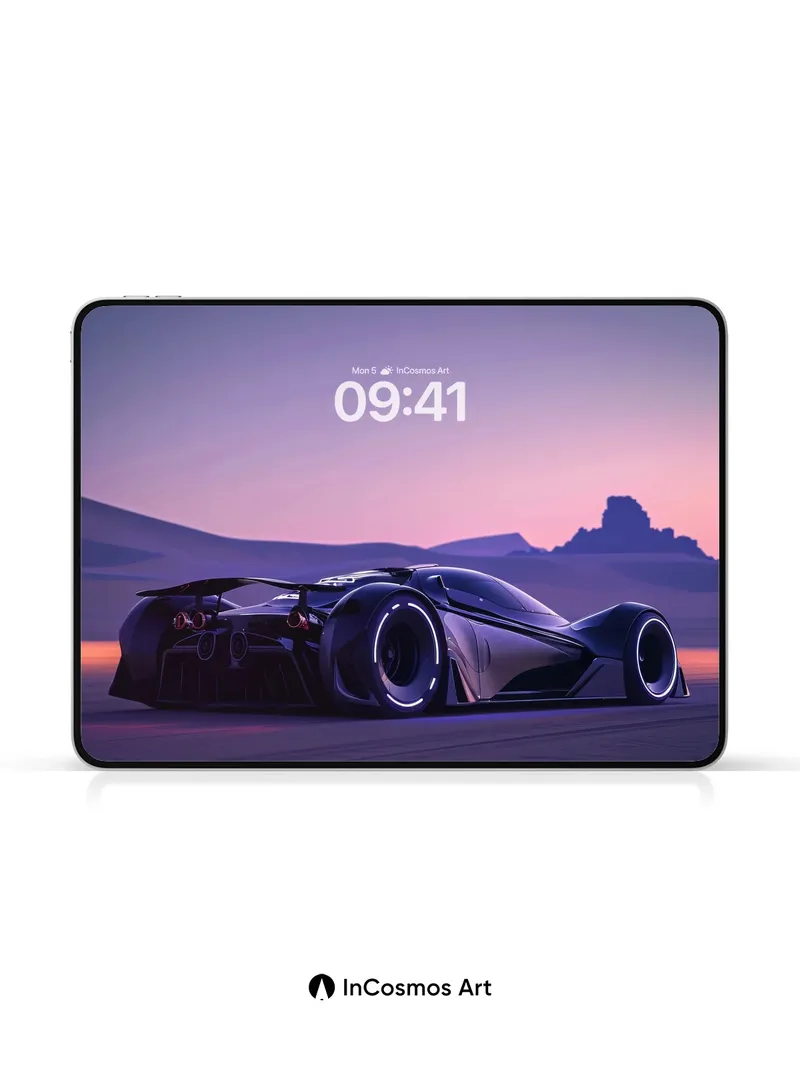 Debug page_description: Did you know the moon’s glow can reflect off carbon-fiber surfaces like liquid mercury? This sleek hypercar glides across a desert dune under a crescent sky, its aerodynamic shell pulsing with electric blue veins that trace every curve like light breathing through metal. The horizon bleeds into twilight, where shadows soften and silence hums with potential. Share this with your best friend. Send this to your love and swap a matching set. What if speed could be felt in stillness?