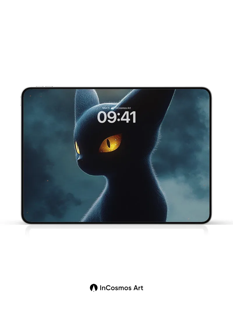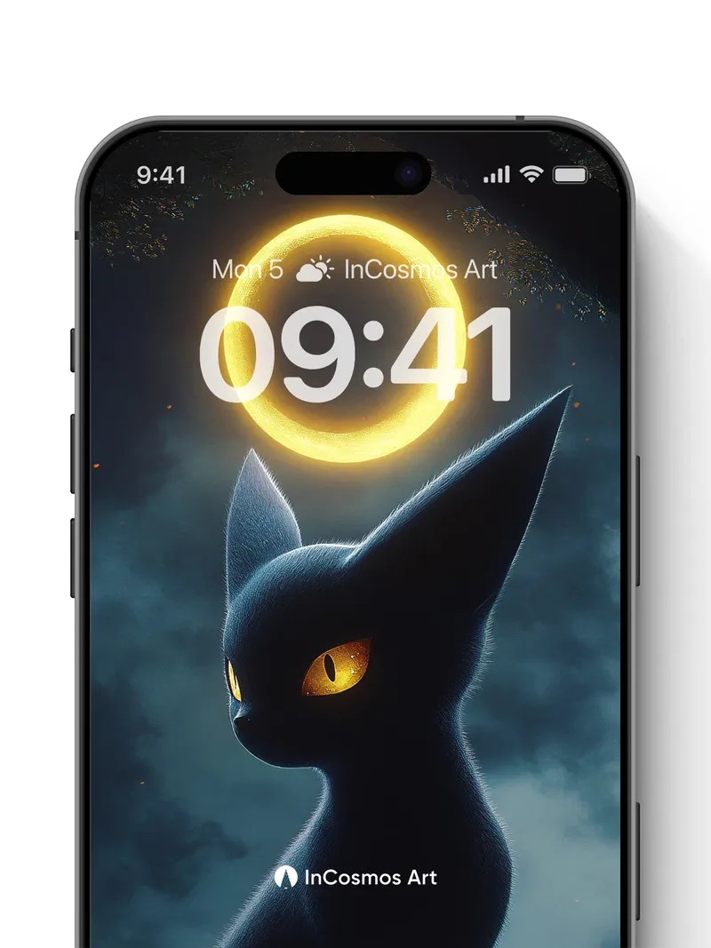 Lunar Eclipse Cat Wallpaper with Golden Halo