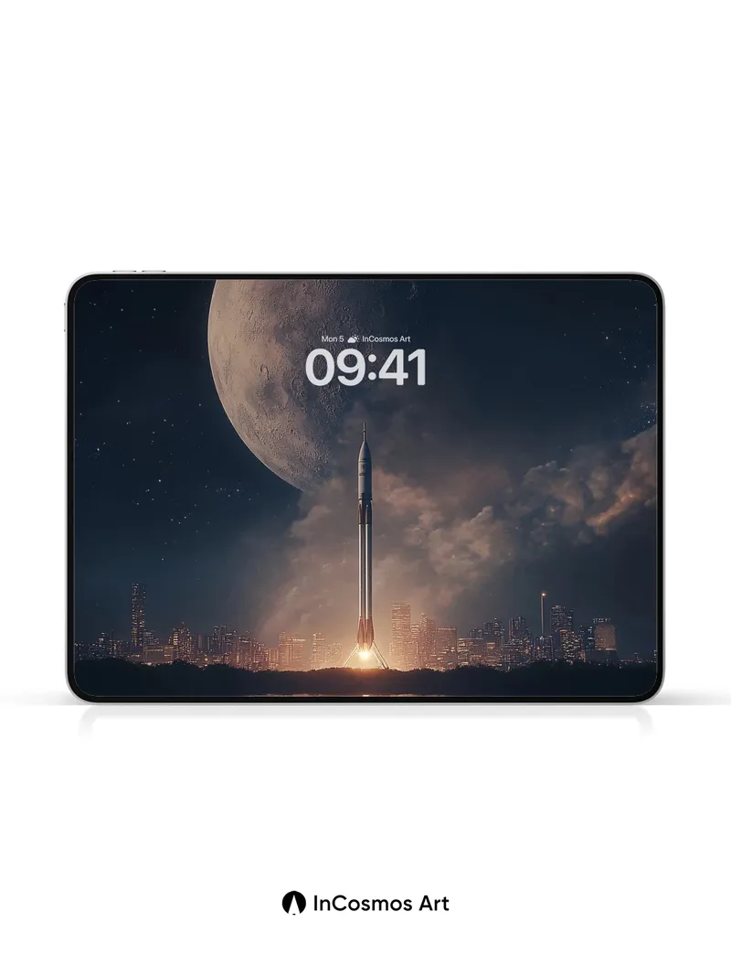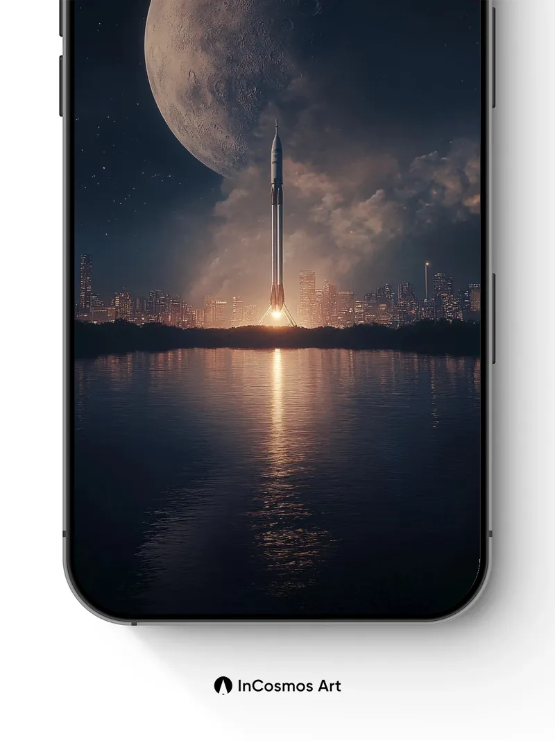 Lunar Launch Wallpaper with City Reflection