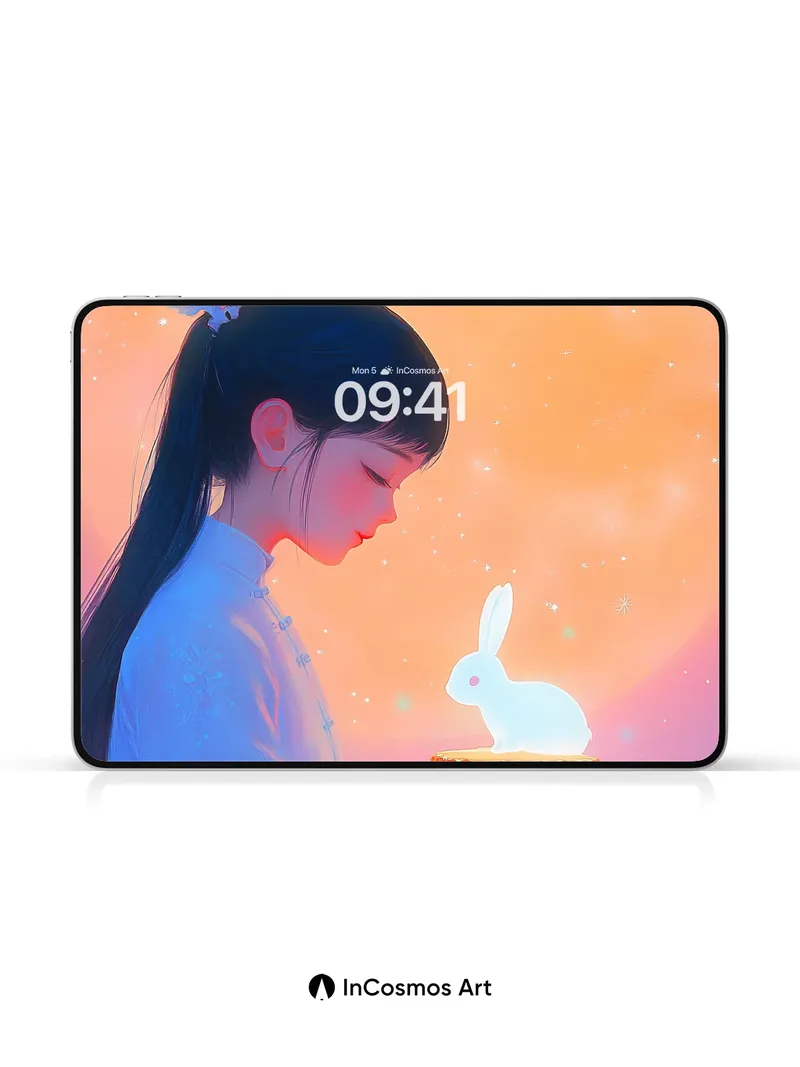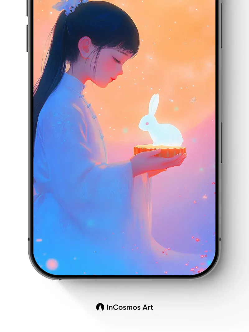 Lunar Reverie Wallpaper with Glowing Rabbit