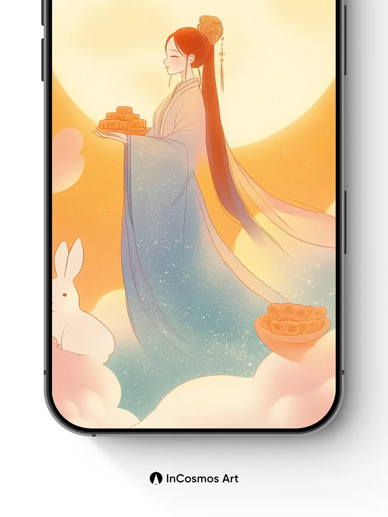 Lunar Serenity Wallpaper with Celestial Mooncakes
