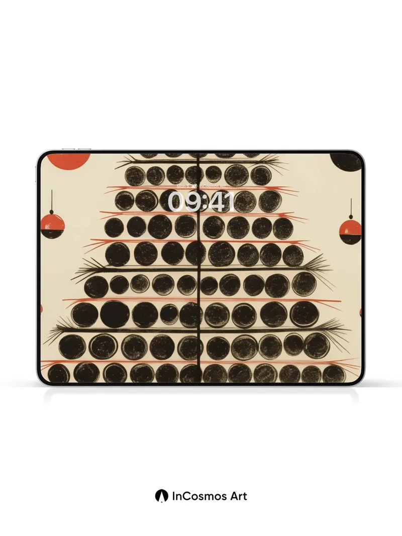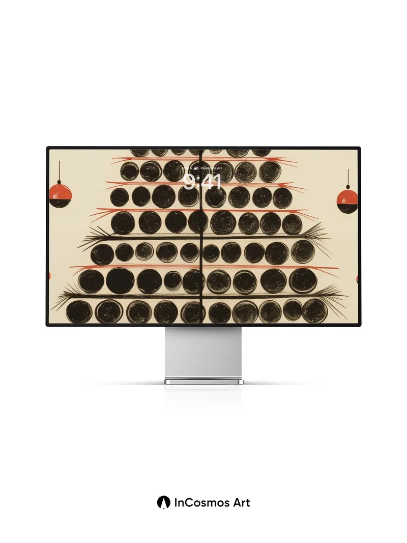 Midcentury Holiday Wallpaper with Geometric Ornaments