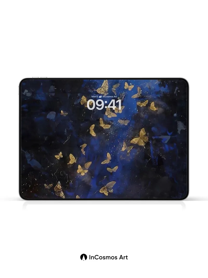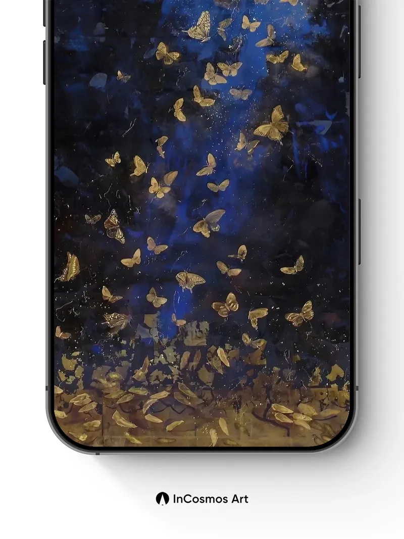 Midnight Alchemy Wallpaper with Golden Butterflies