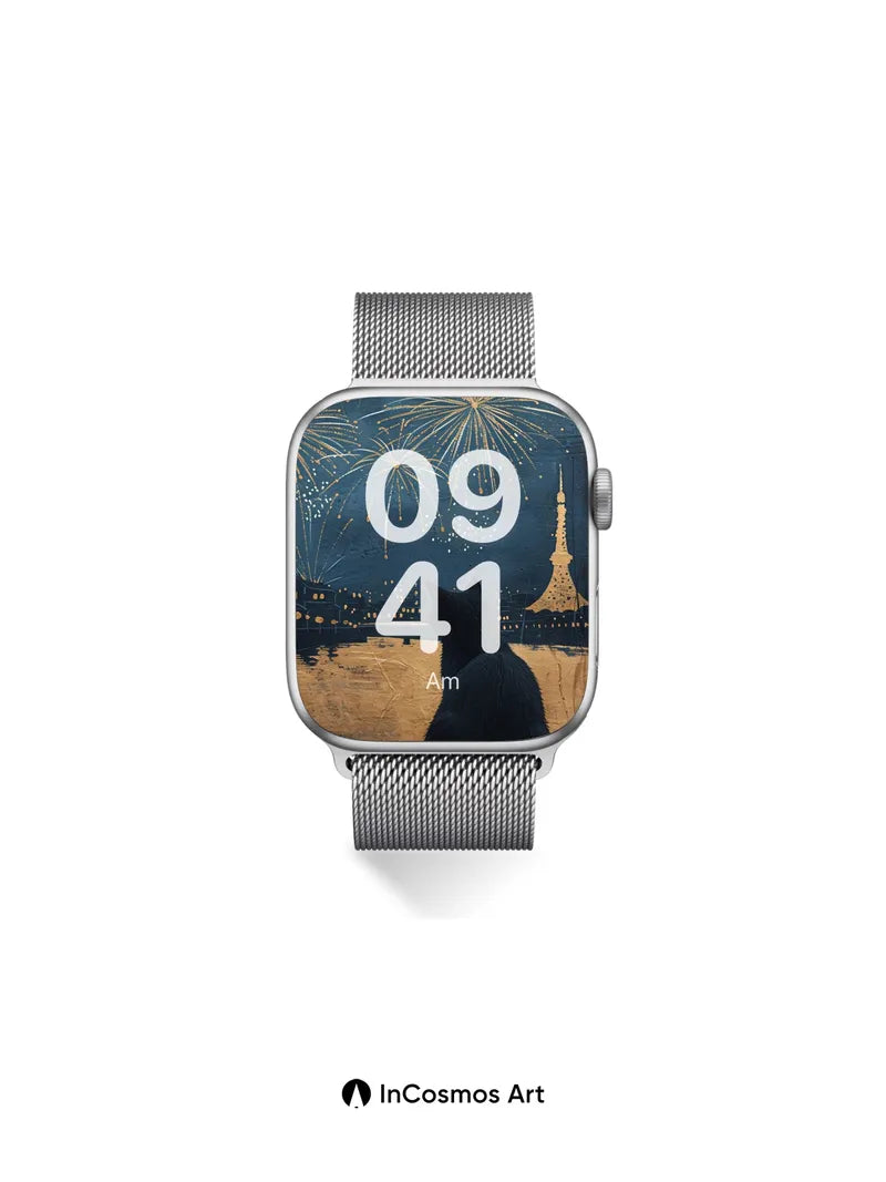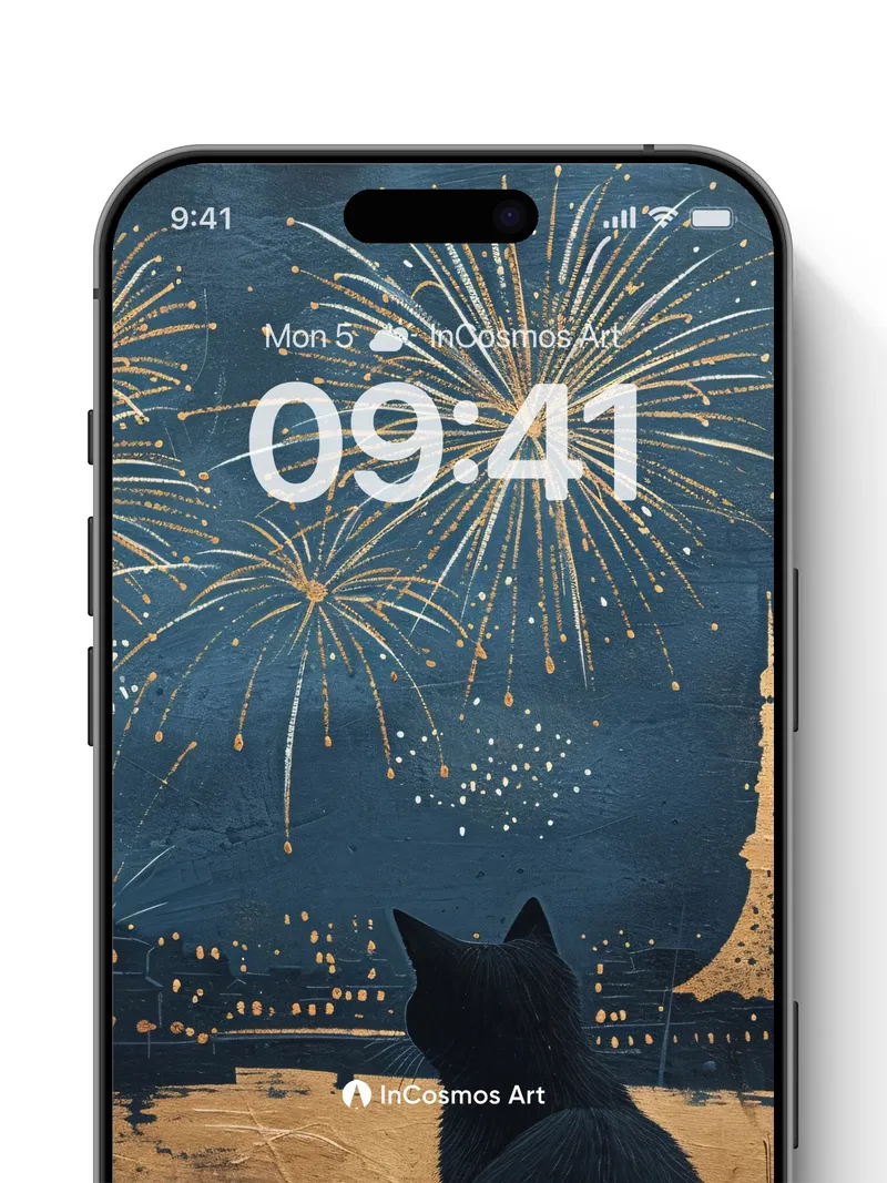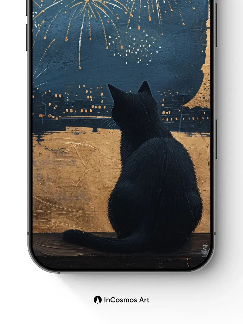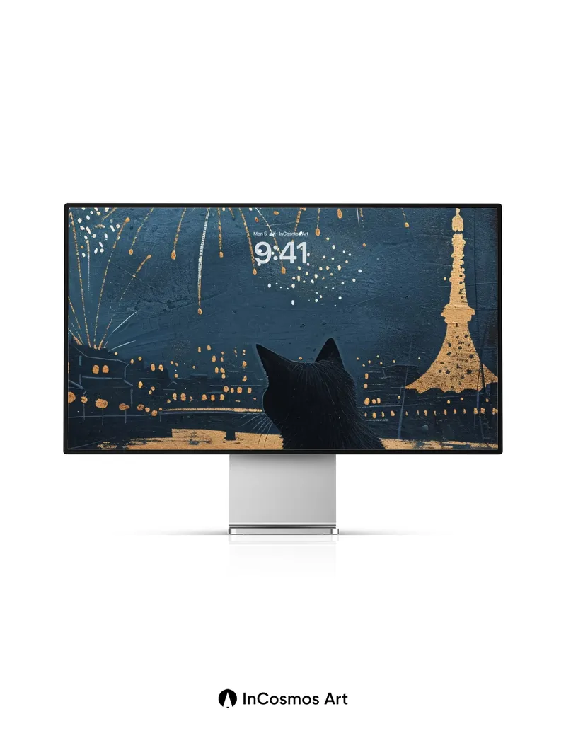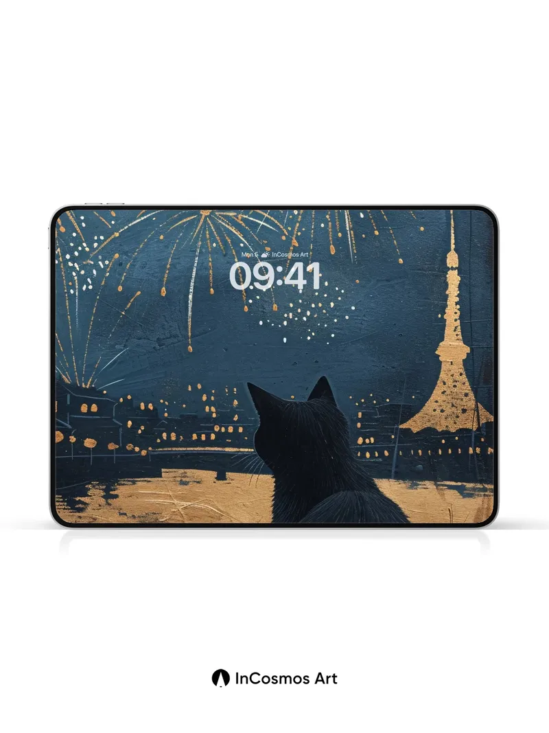 Midnight Whisker Wallpaper with Tokyo Fireworks