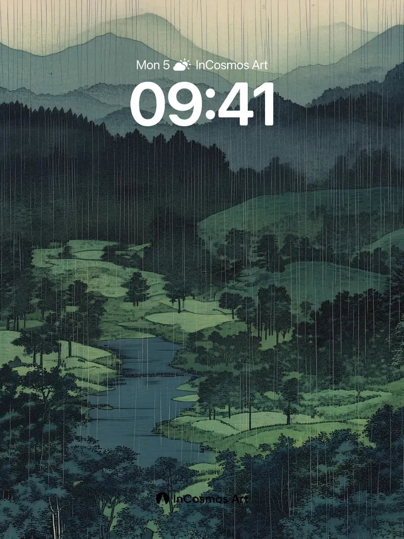 Mist-Cradled Valley Wallpaper with Rain-Trace Lines