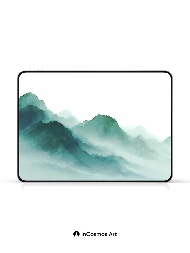 Mist-Crowned Peaks Wallpaper in Ethereal Green